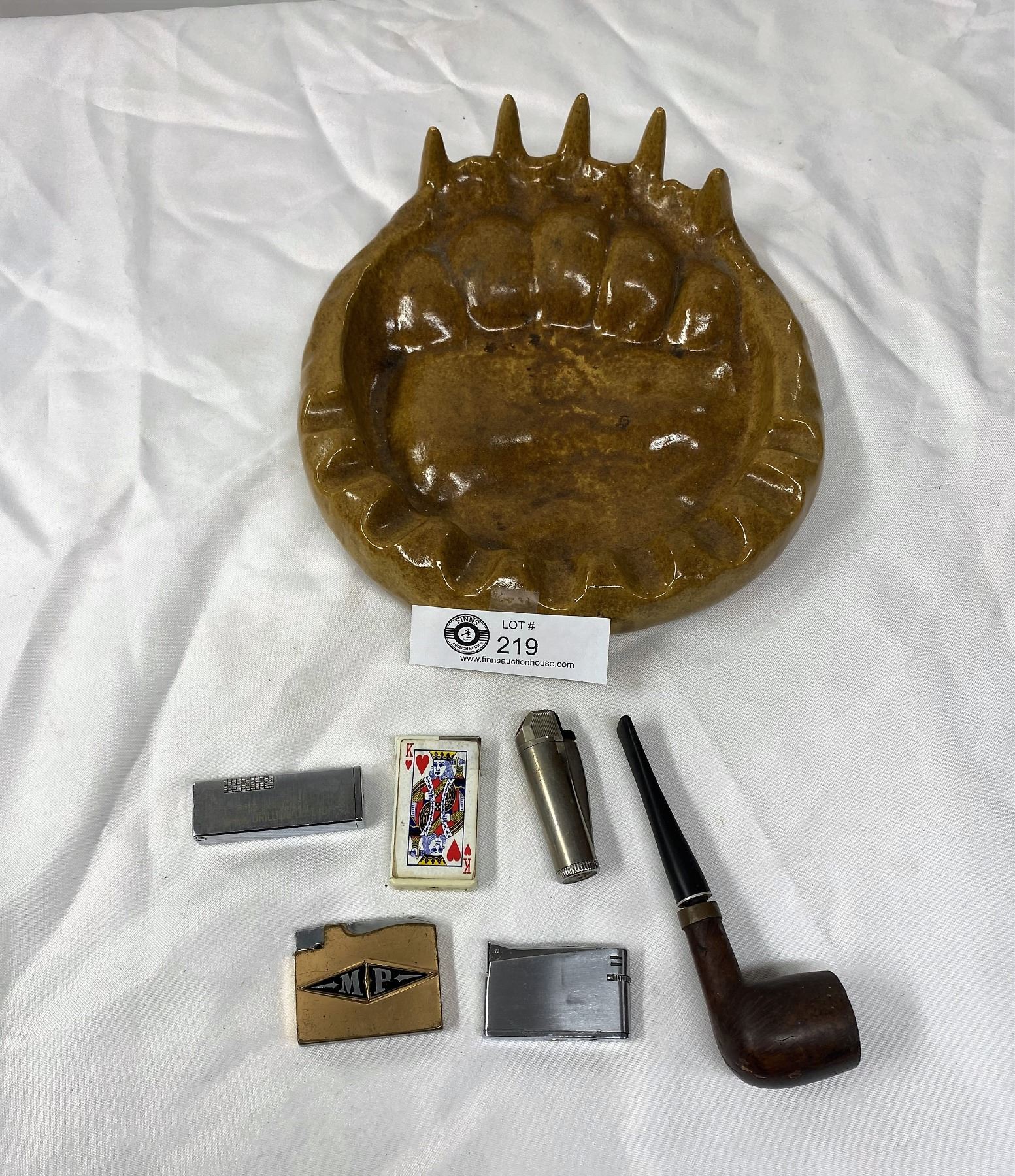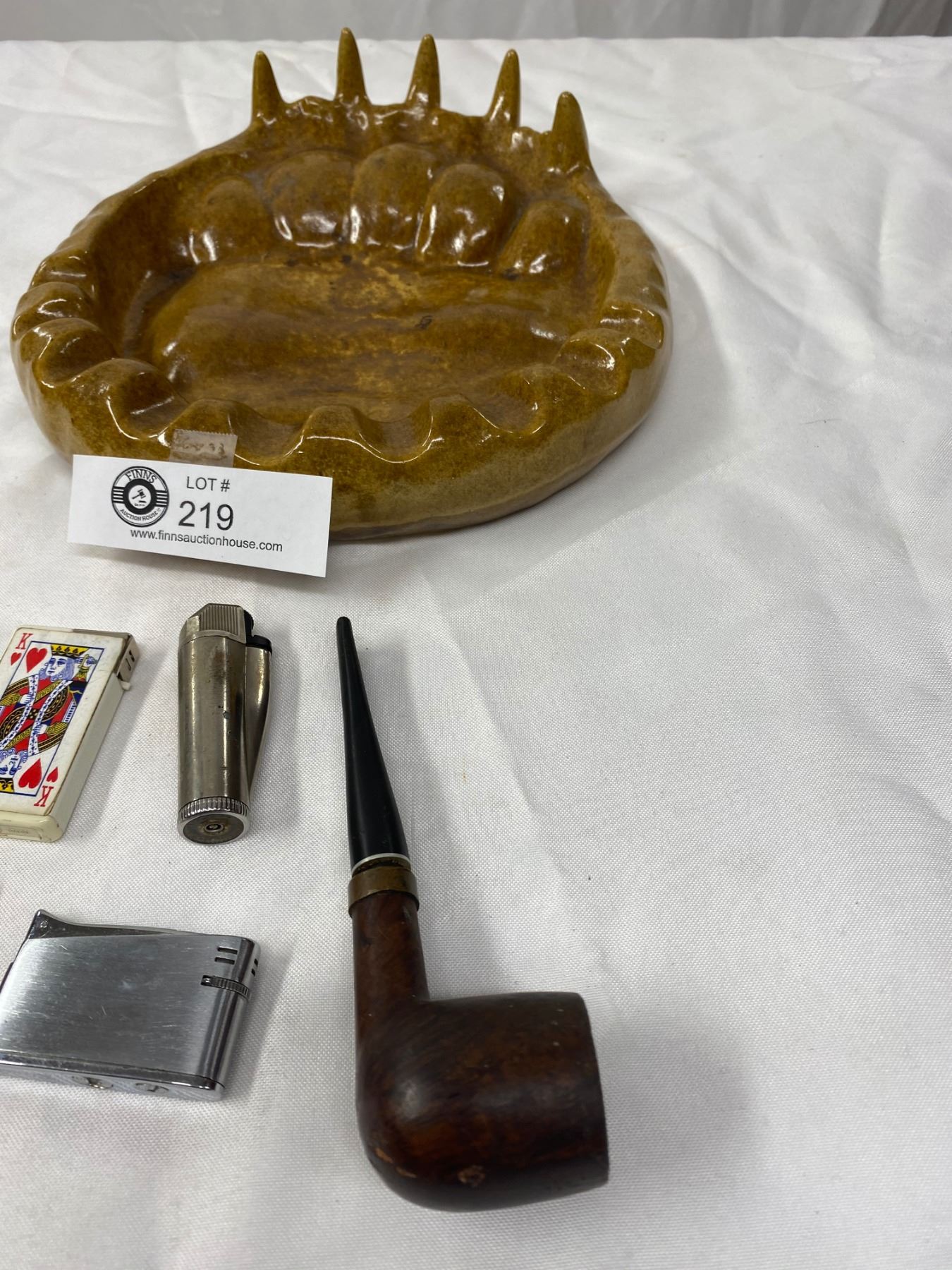 Vintage Bear Paw Ashtray with Pipes and Lighters
