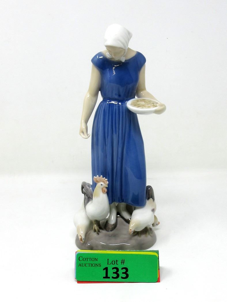 Denmark, retired "Girl with Chickens" model # 2220. Fully hallmarked and signed.