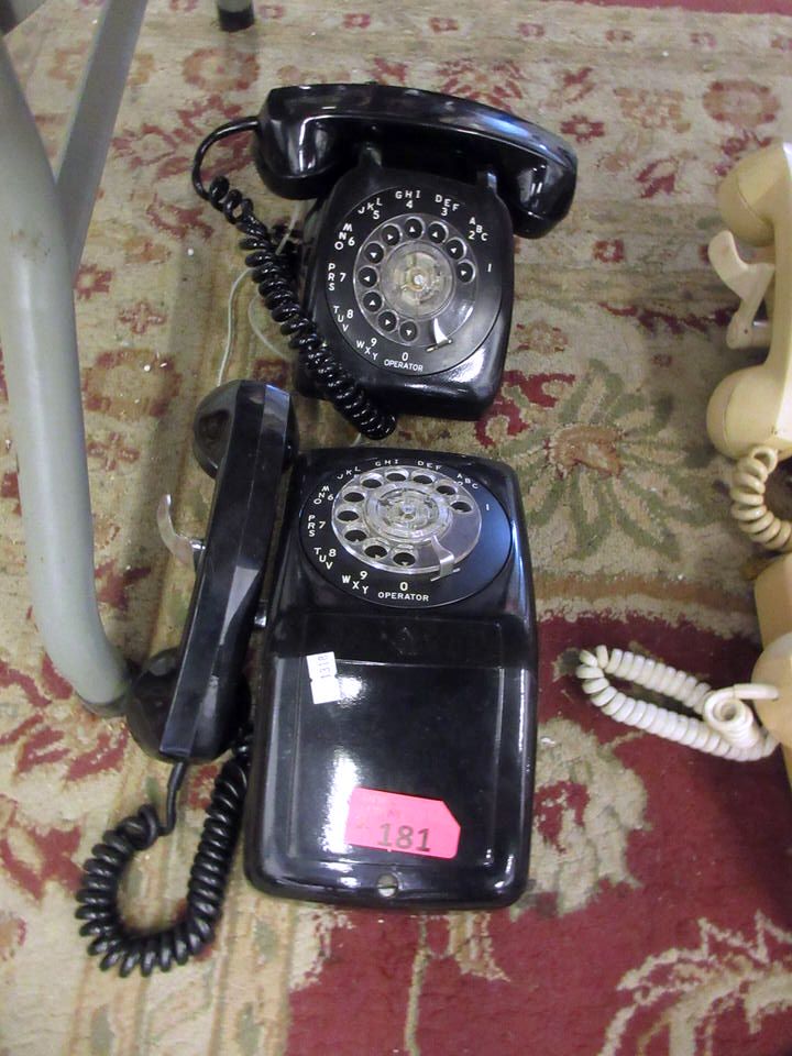 Vintage Black Desk and Wall Phone