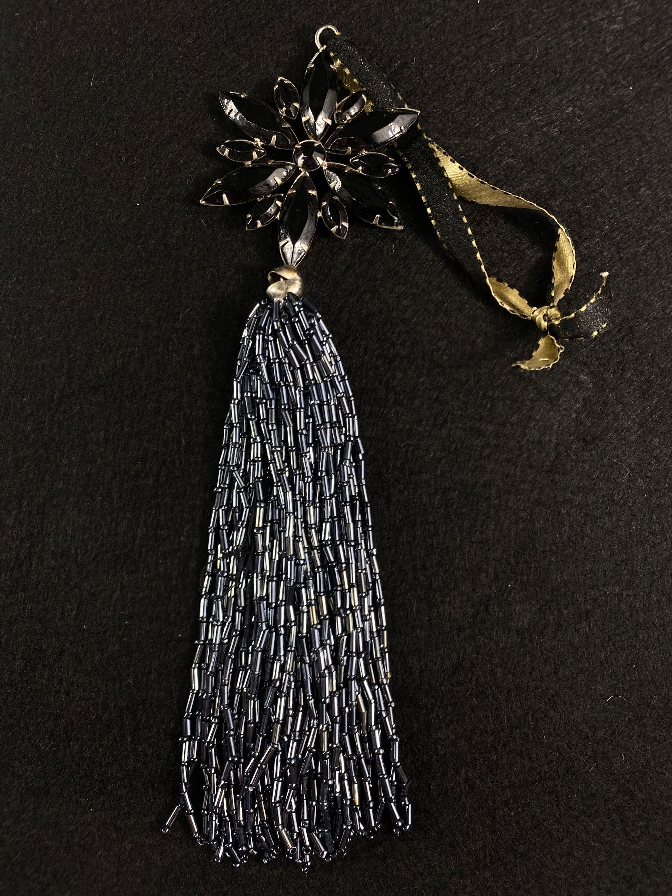 Vintage Black Stone Hanger w/ Tassels