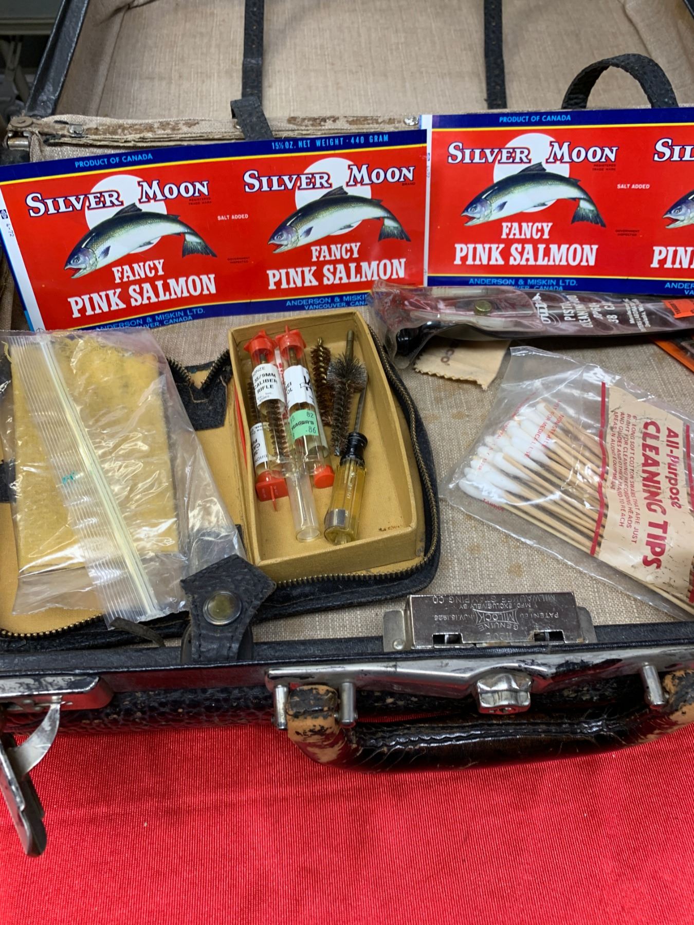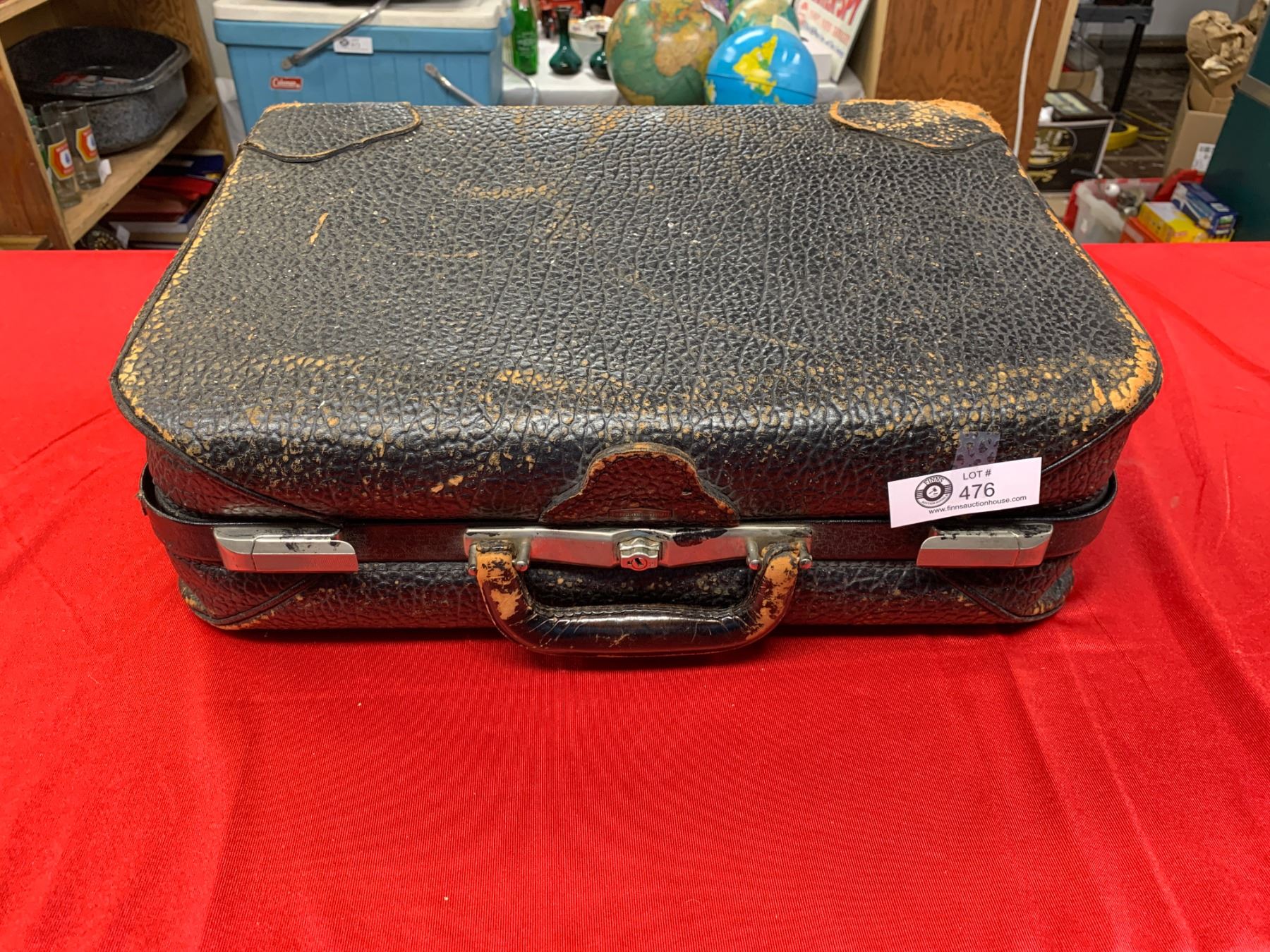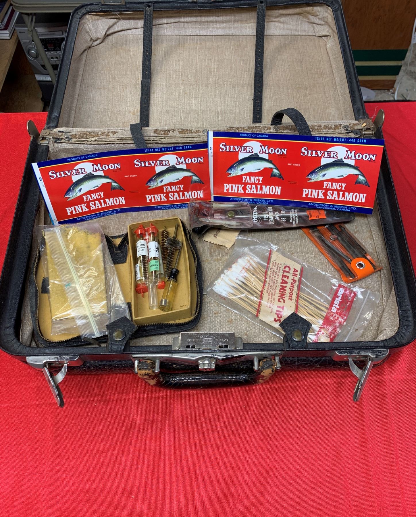 Vintage Black Suitcase with Some Gun Cleaning Pieces Inside. 21" W x 7.5" Thick x 15" H