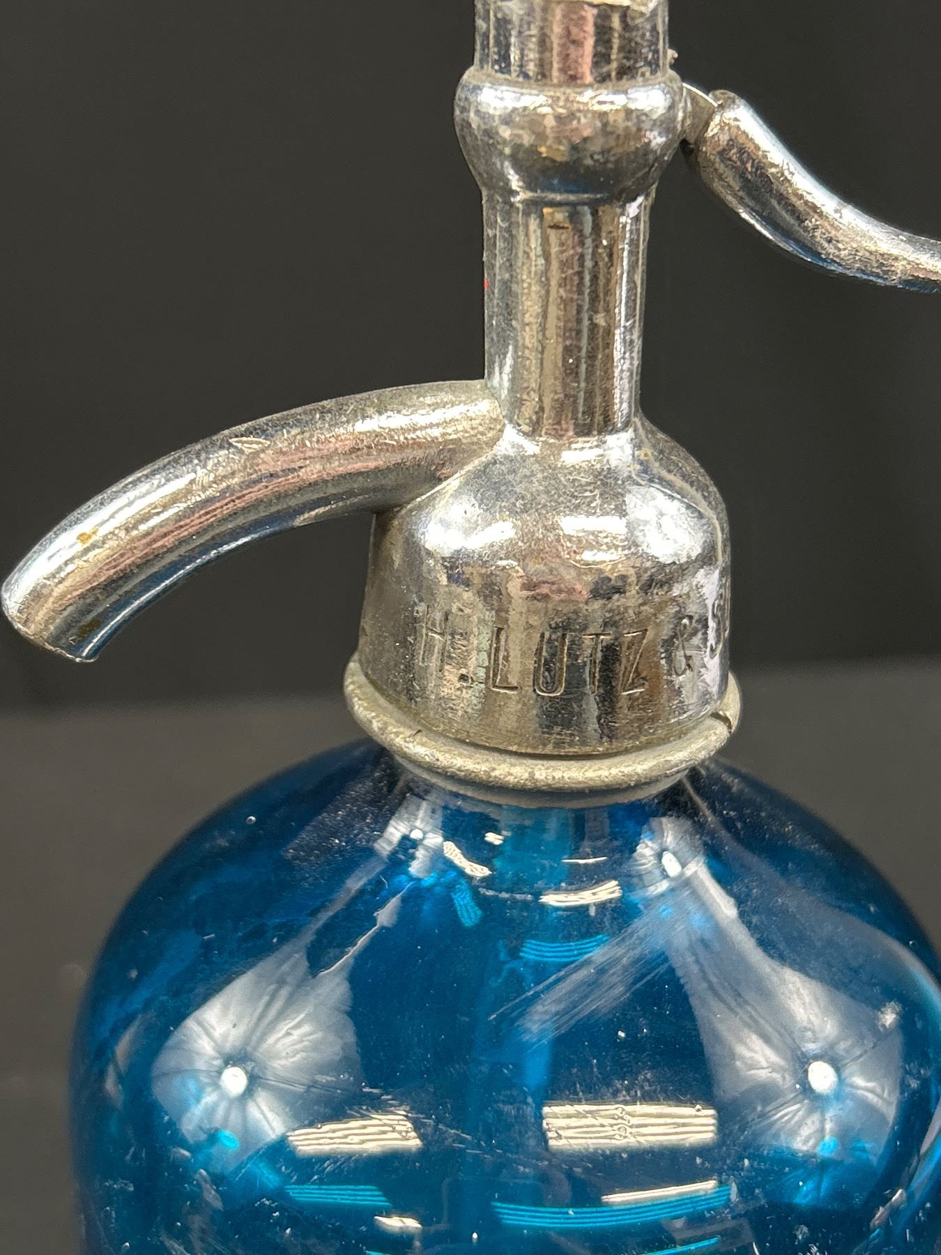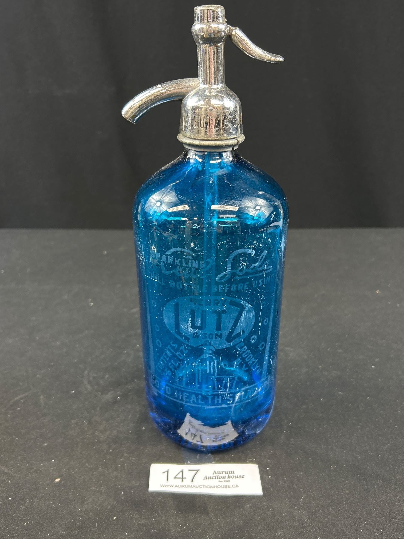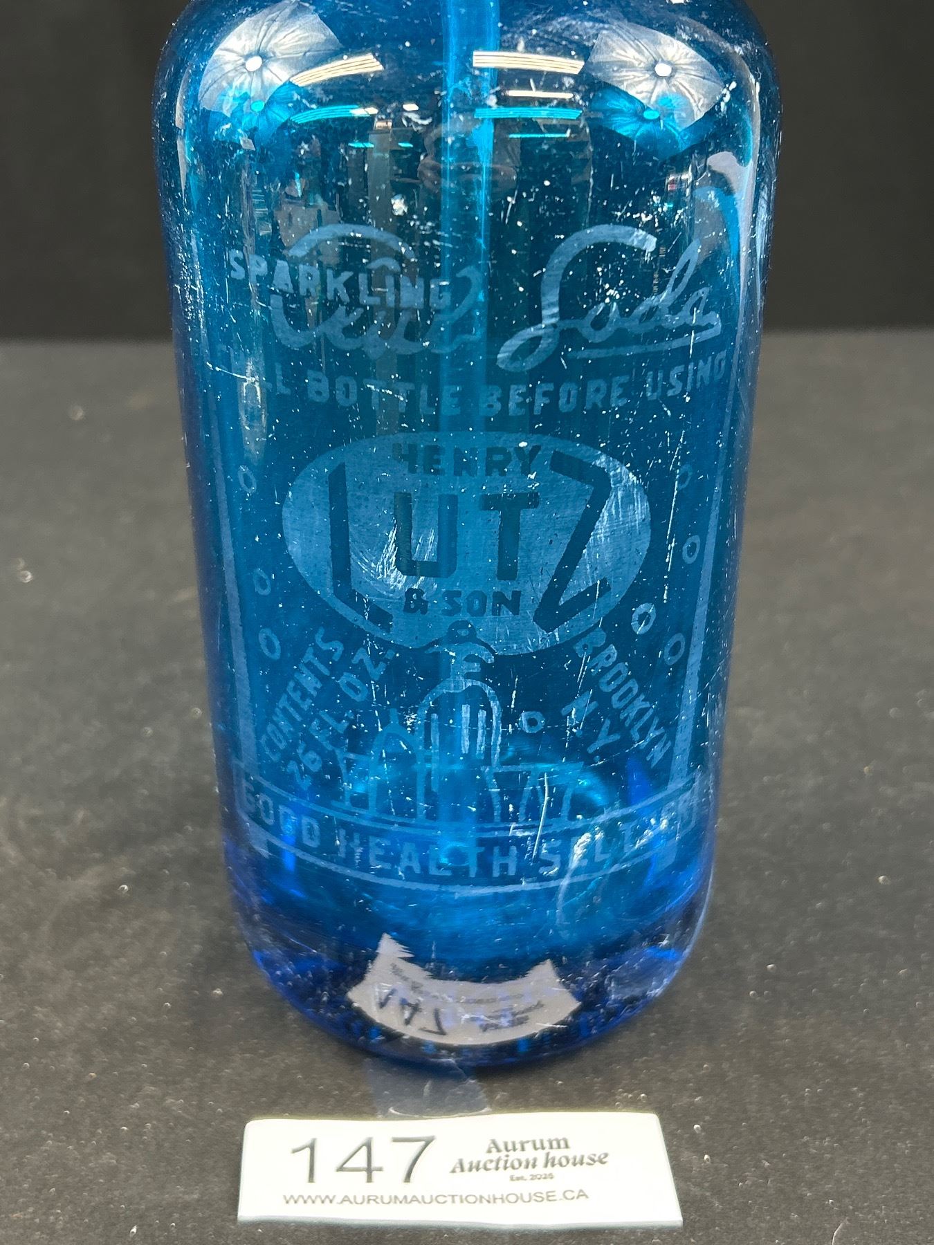 Vintage Blue Henry Lutz and Son Seltzer Bottle from Brooklyn New York