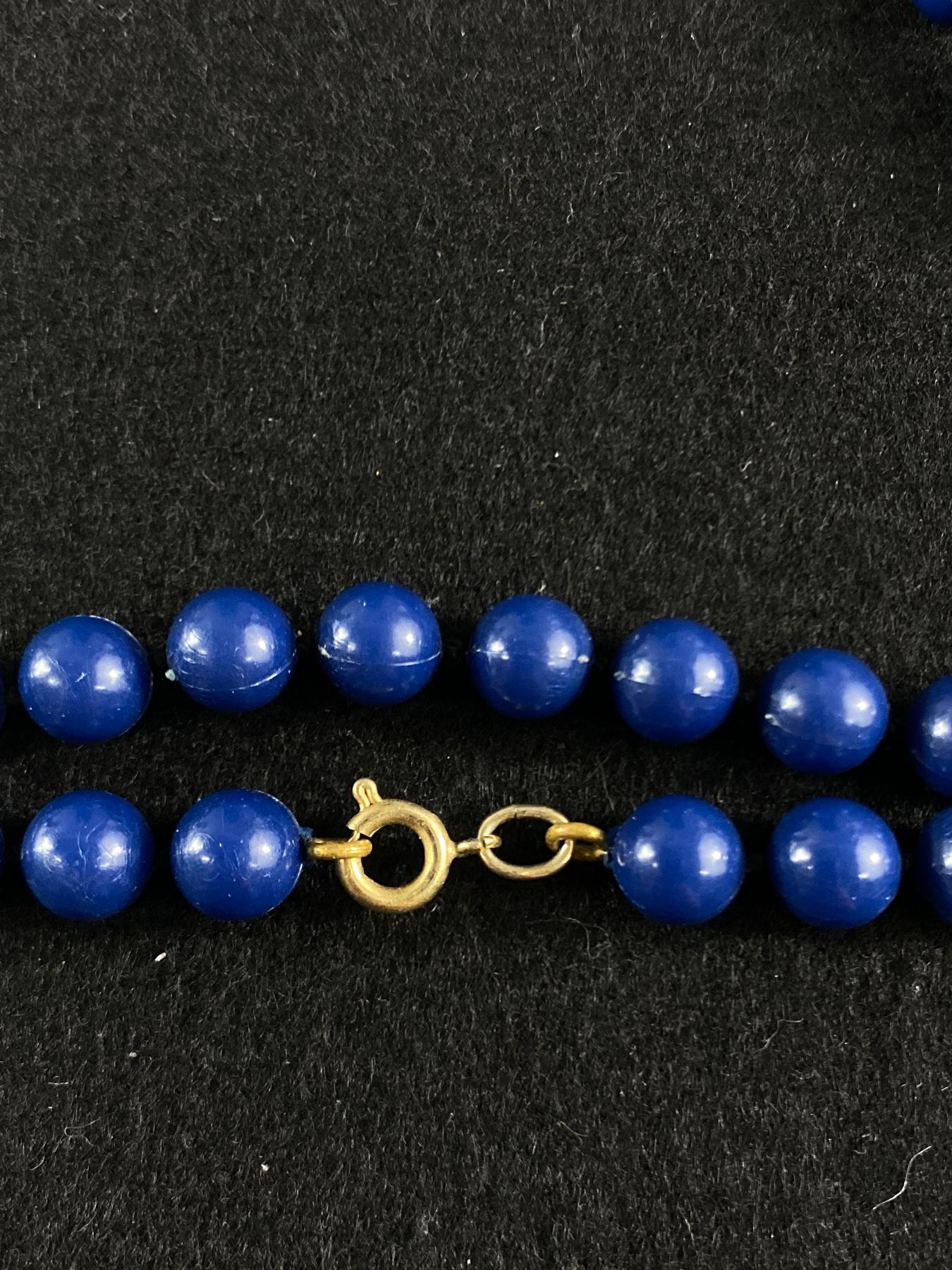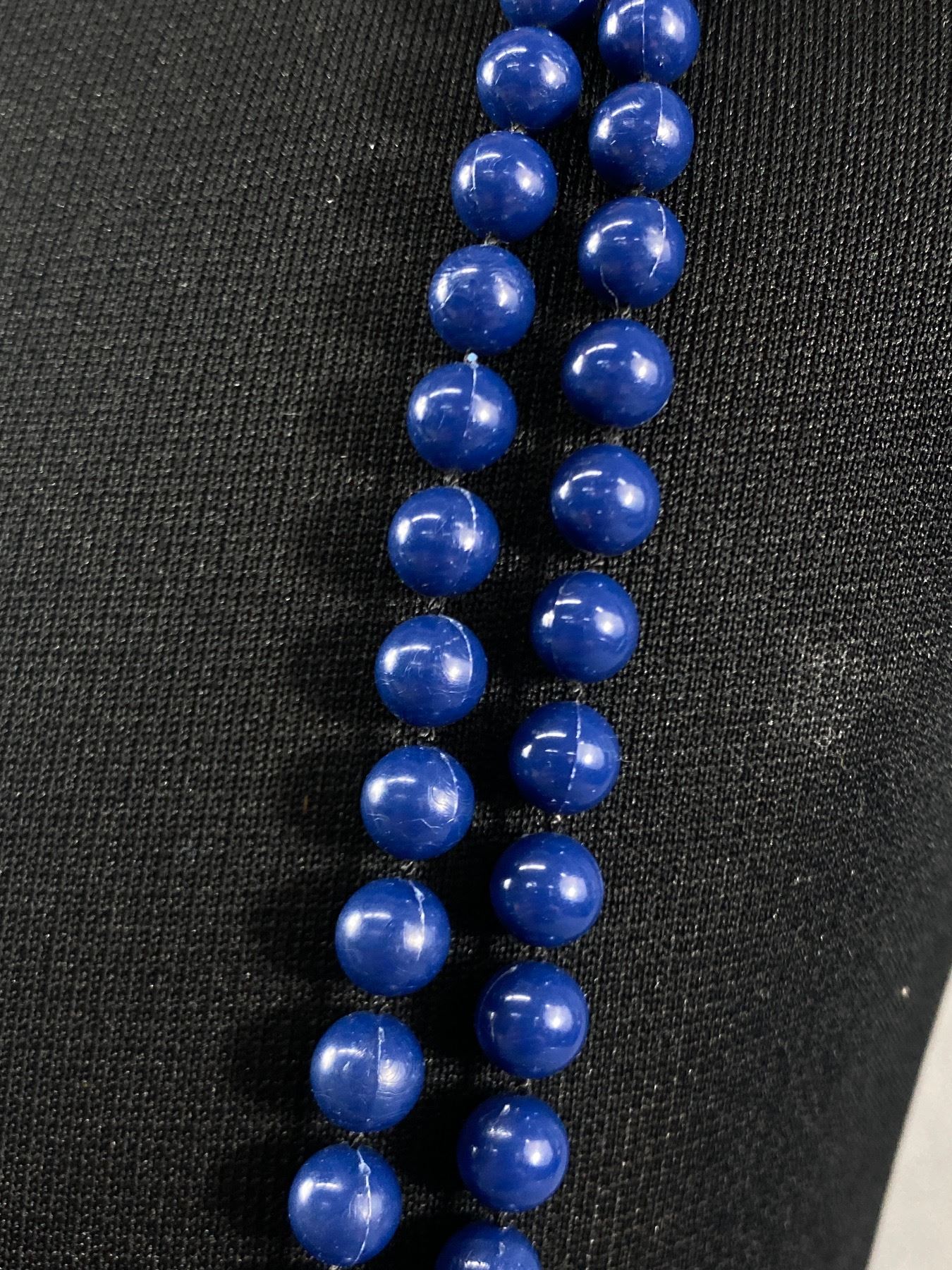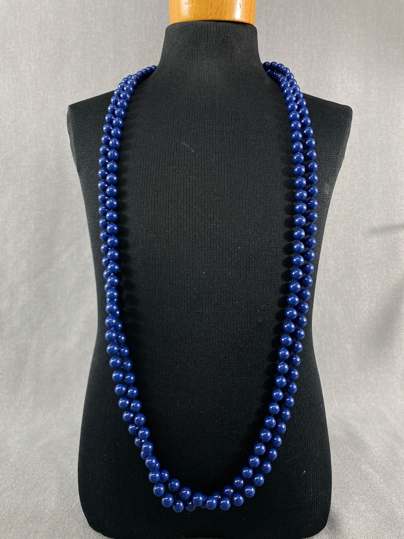 Vintage Bold Blue Faux Pearl Multi Strand Necklace 68"L
