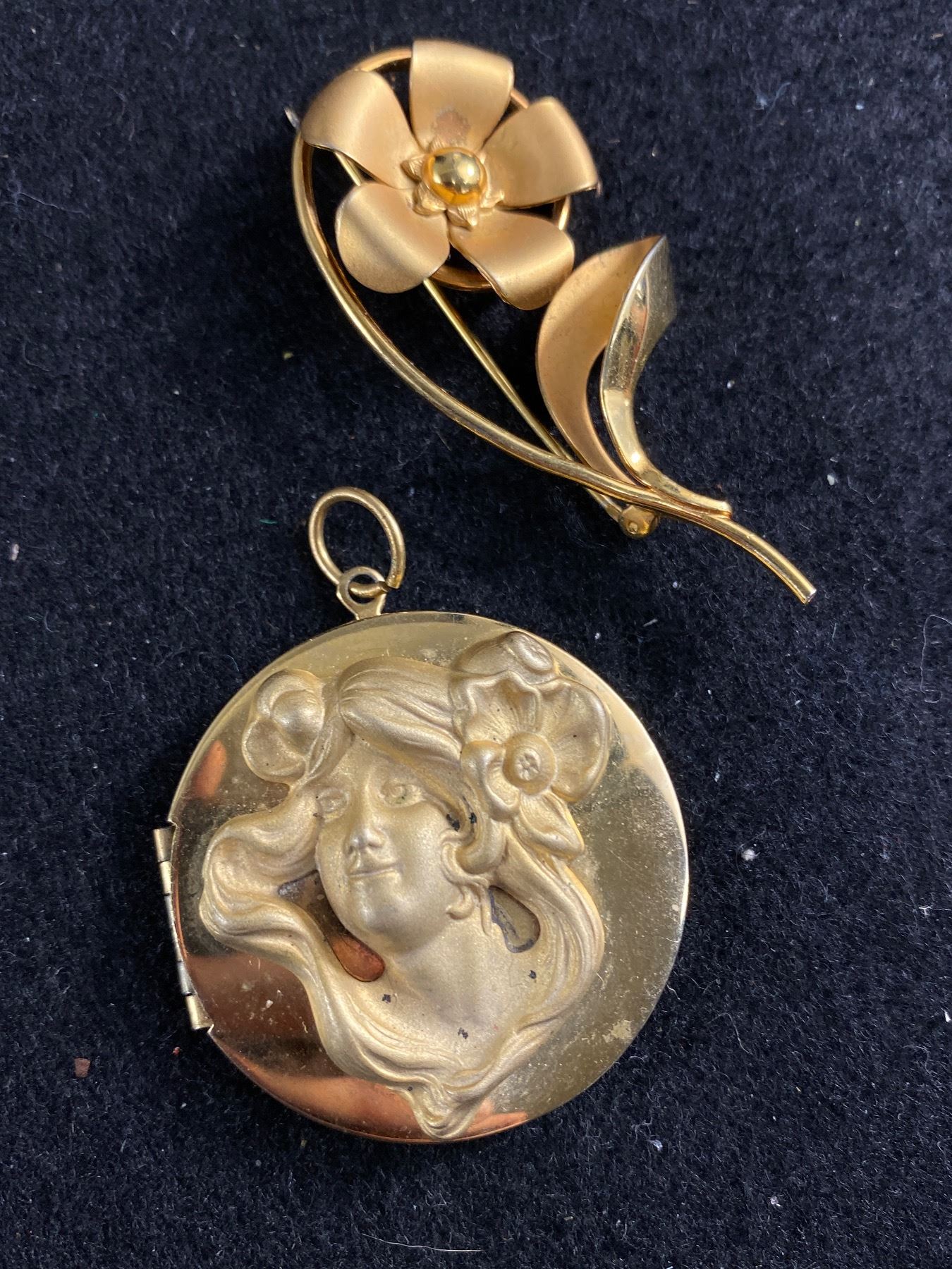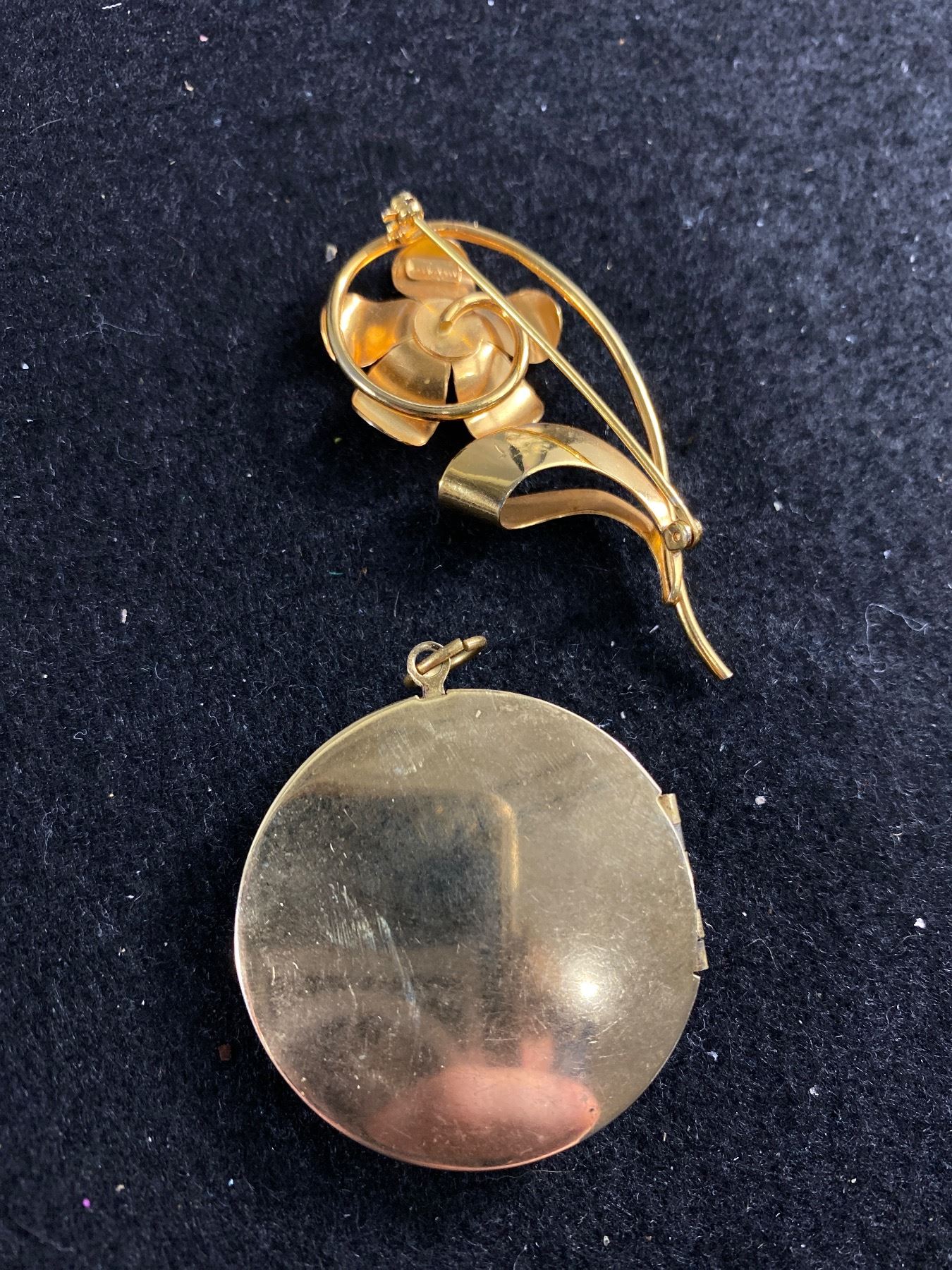 Vintage Bond Boyd Flower Brooch/Pin with a Round Gold Tone Locket