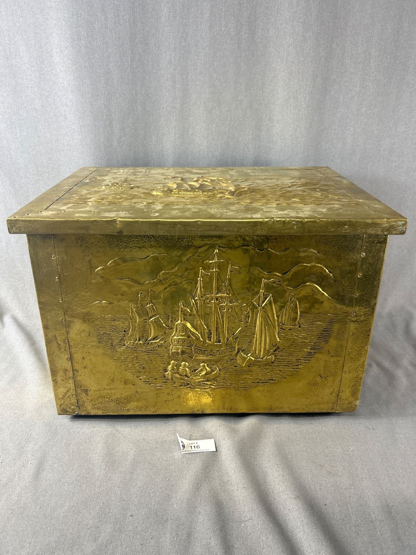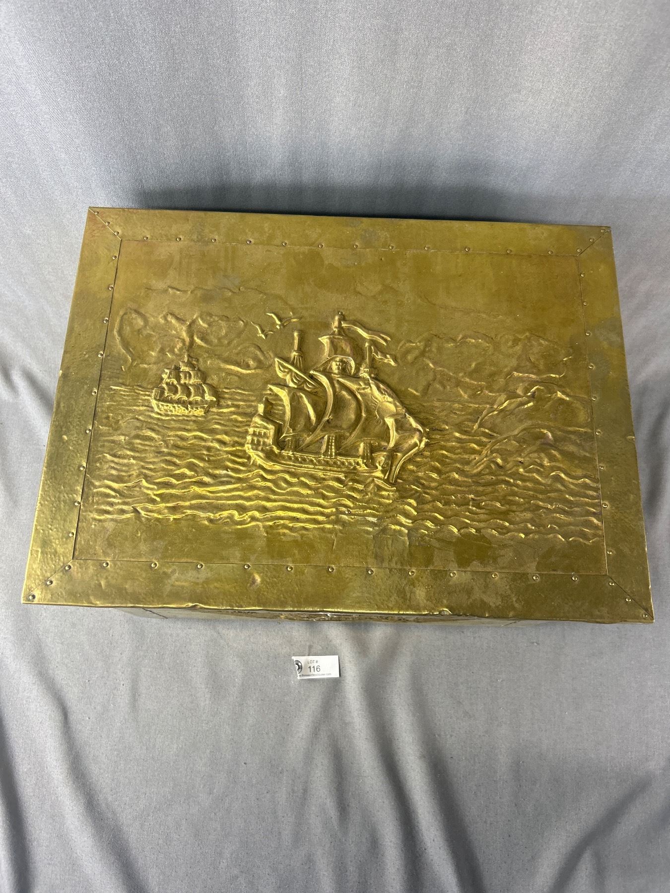 Vintage Brass Covered Wood Box. Approx. 19" x 13.5" x 13"