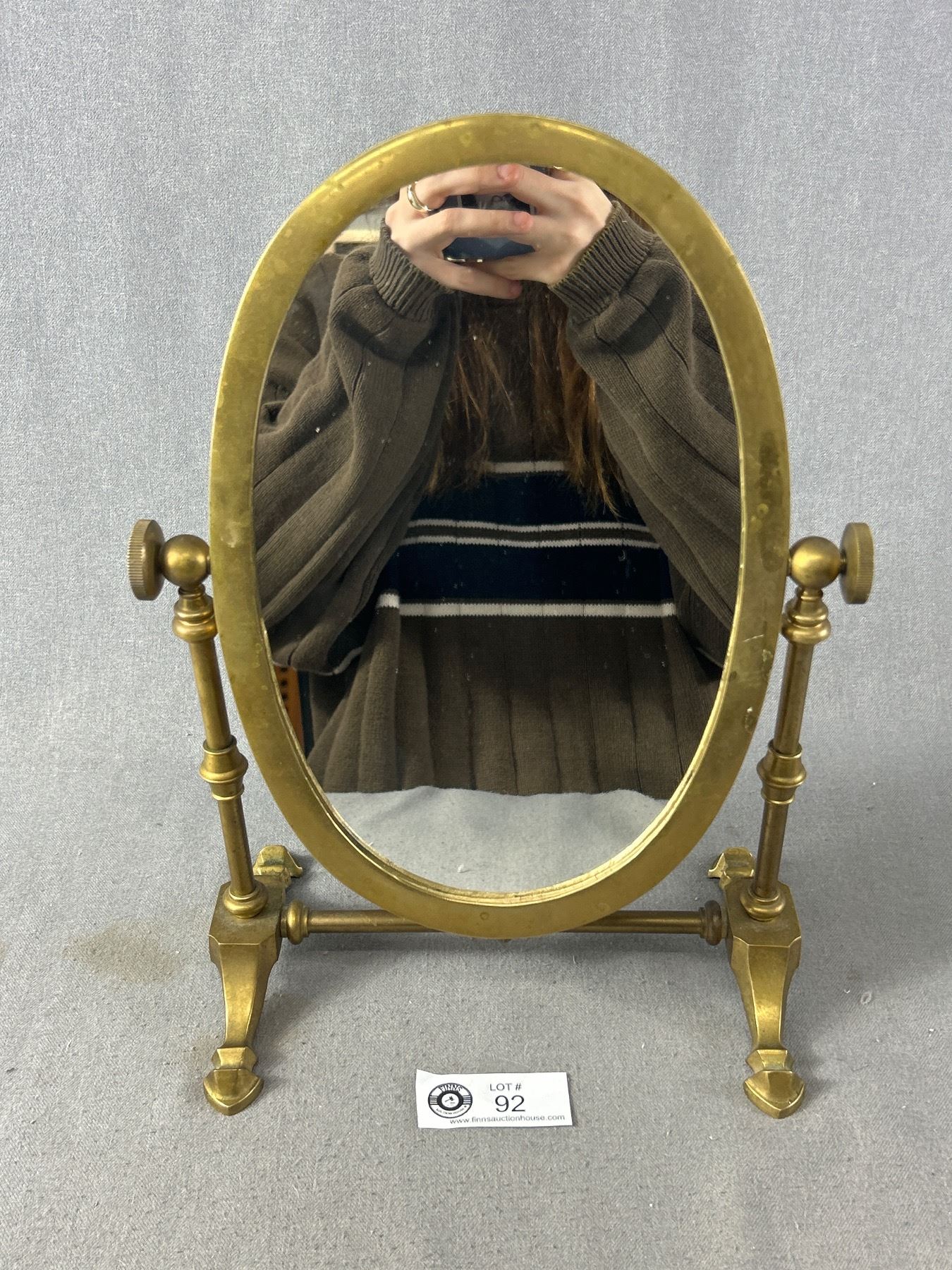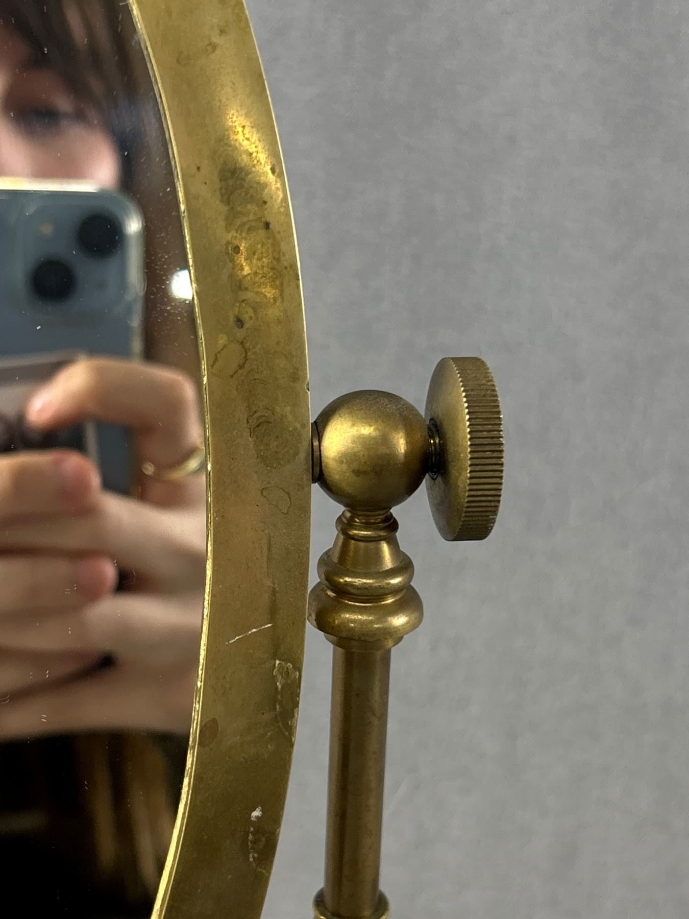 Vintage Brass Oval Tilting Swivel Tabletop Vanity Mirror - 13.5" X 9.75"