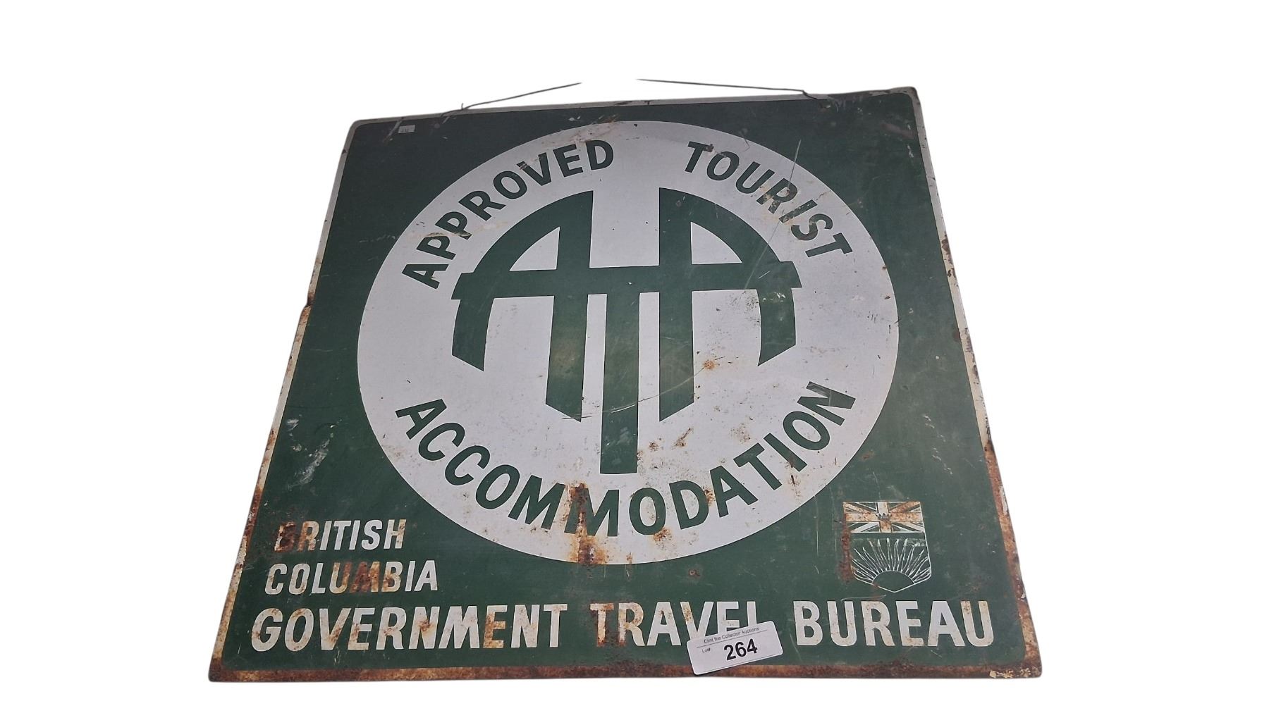 Vintage British Columbia Travel Bureau double sided metal sign, hard to find, 24"x24"