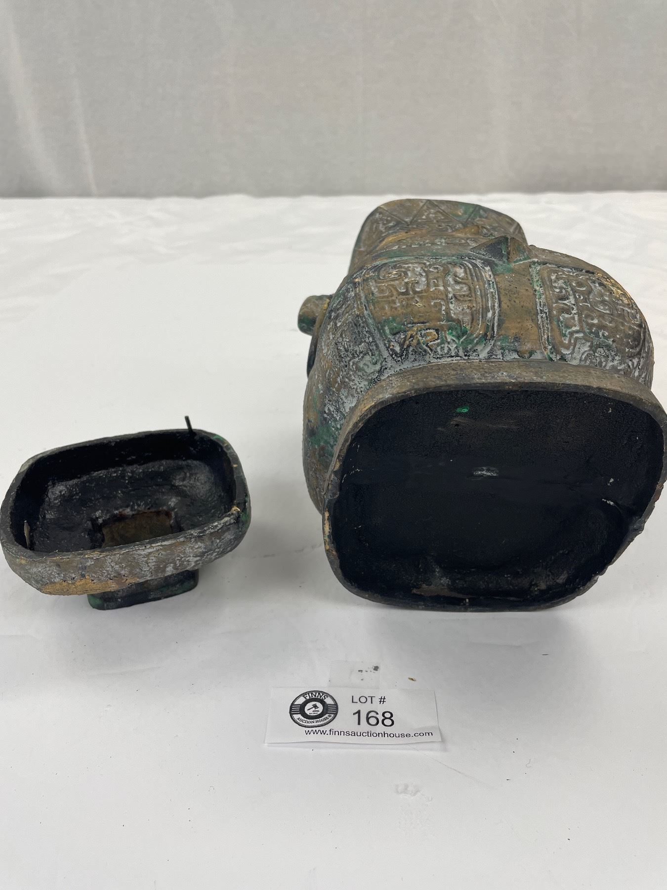 Vintage Bronze Lidded Pot with Two Handles Very Decorative