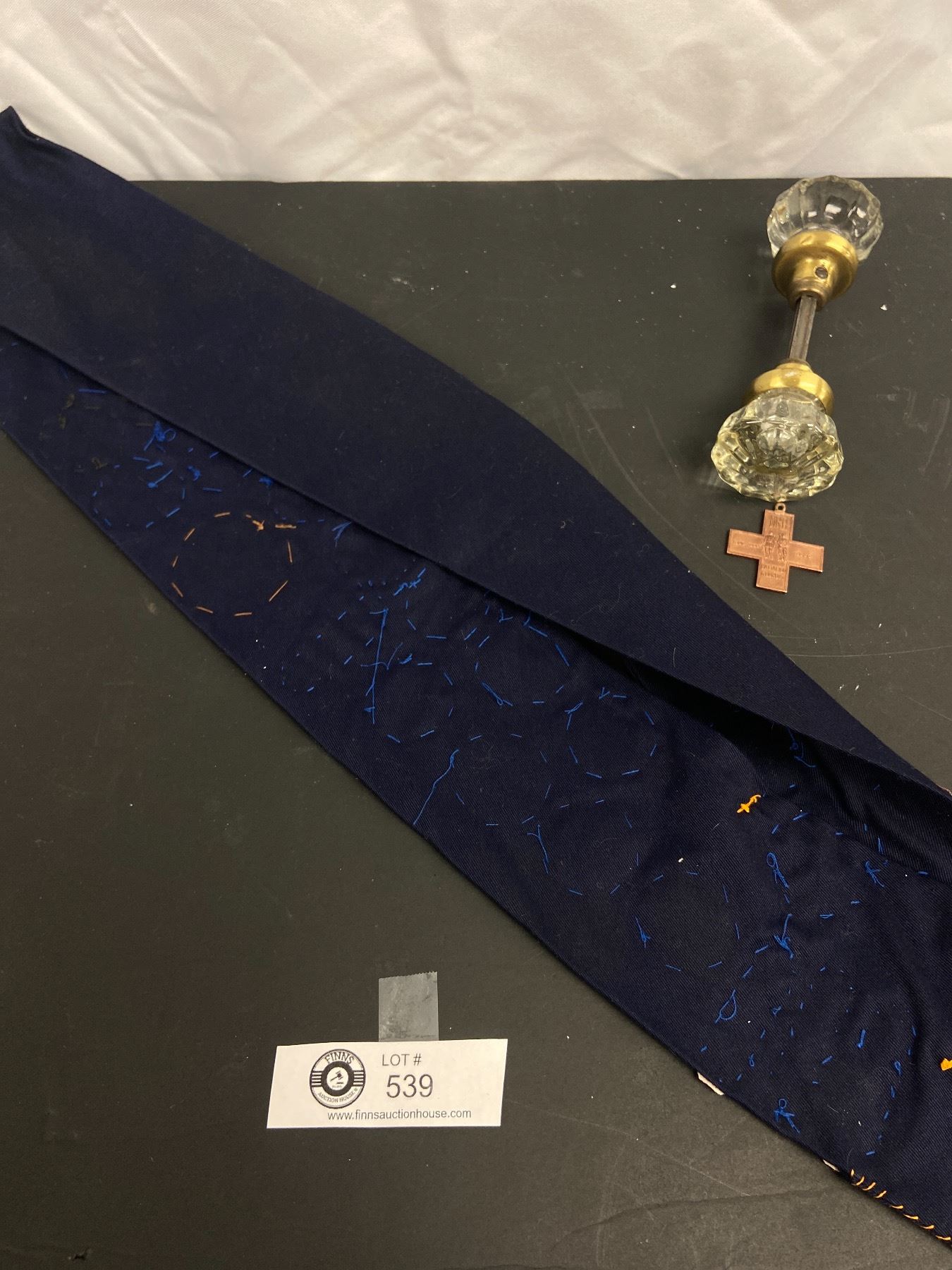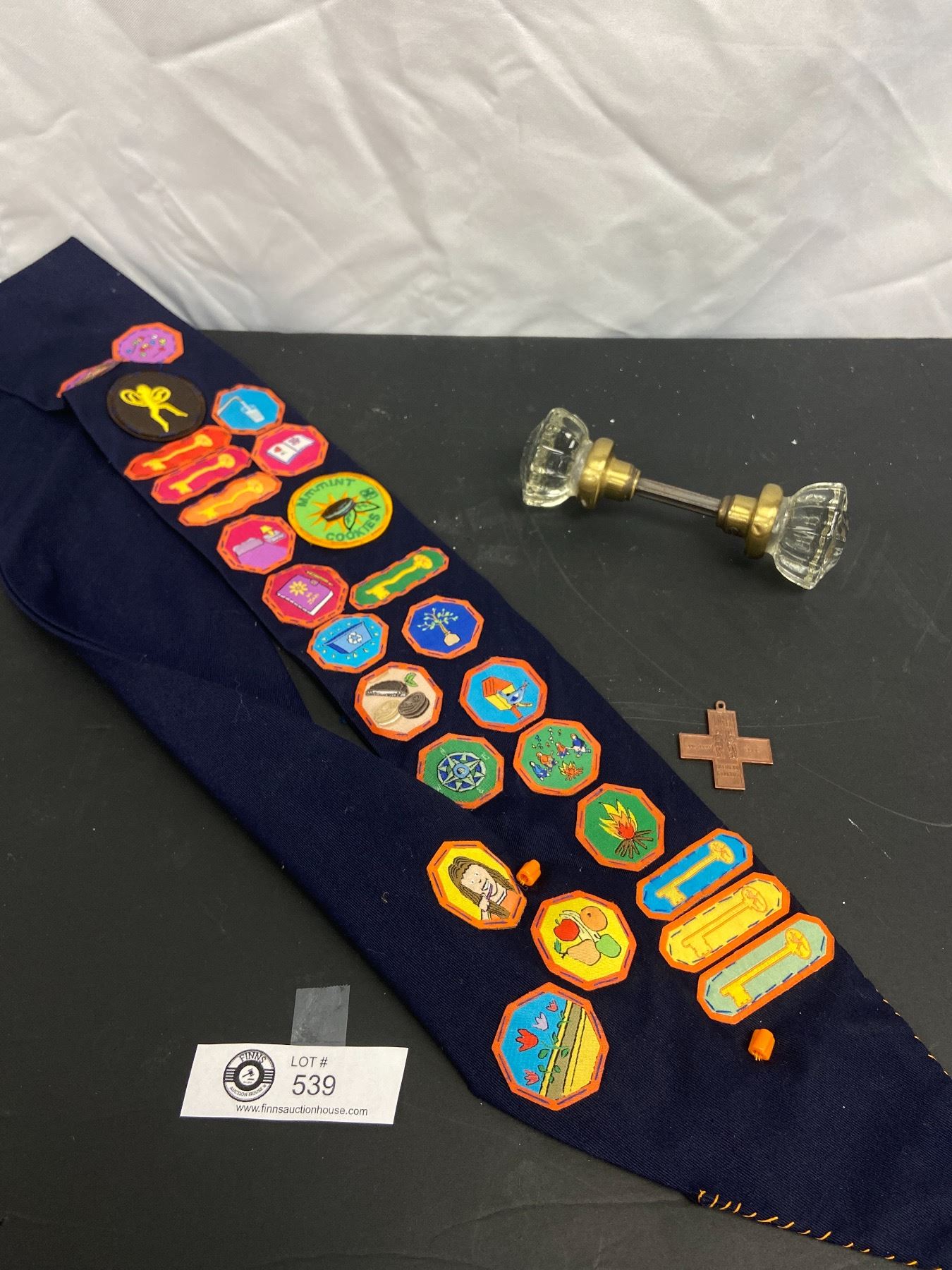 Vintage Brownie Sash with Badges, Vintage Decorative Doorknob, NRA Battalion Recruit Cross