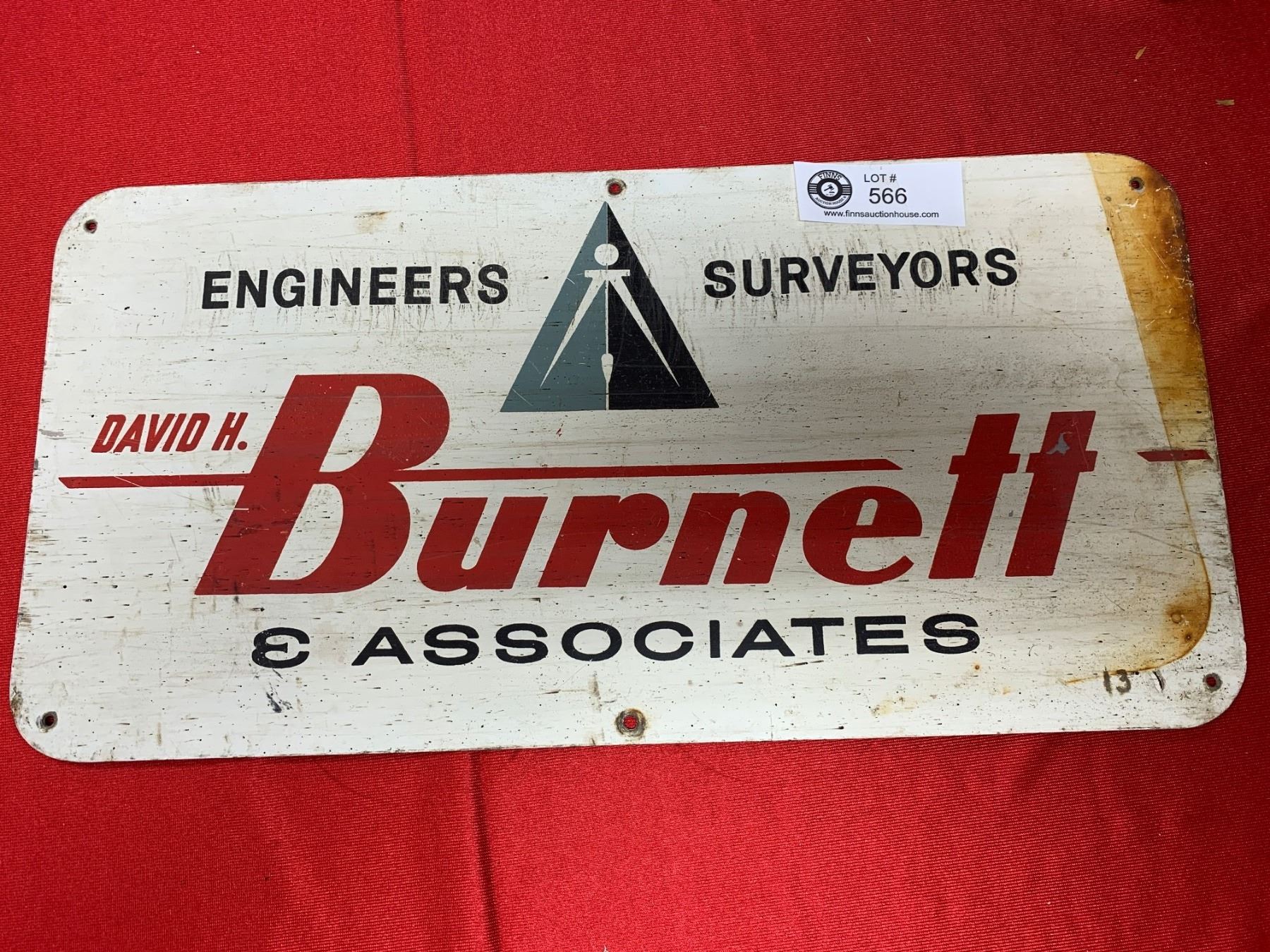 Vintage Burenett and Associates surveyors tin sign 18" x 9"