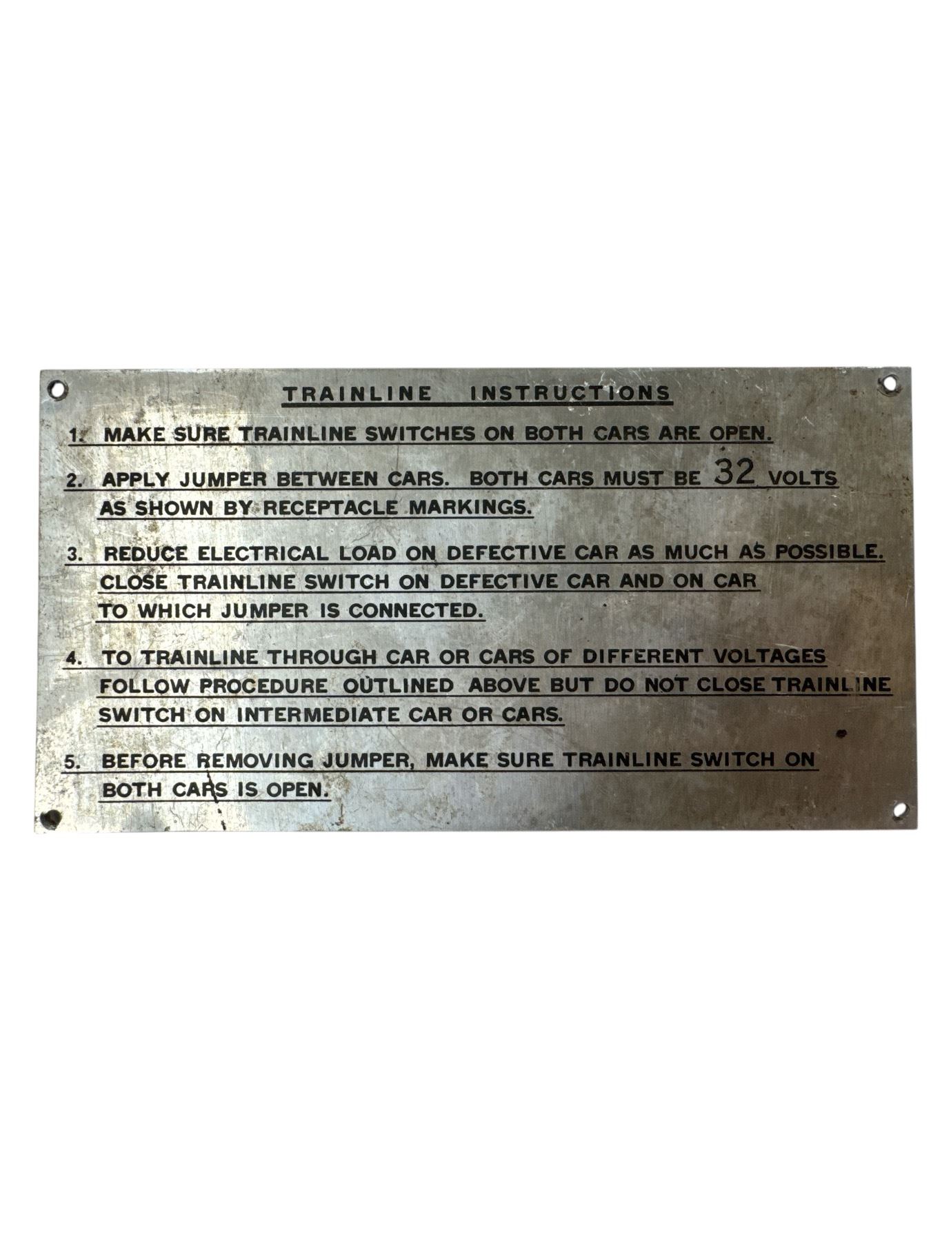 Vintage CPR Baggage "Trainline Instructions" Metal Plaque