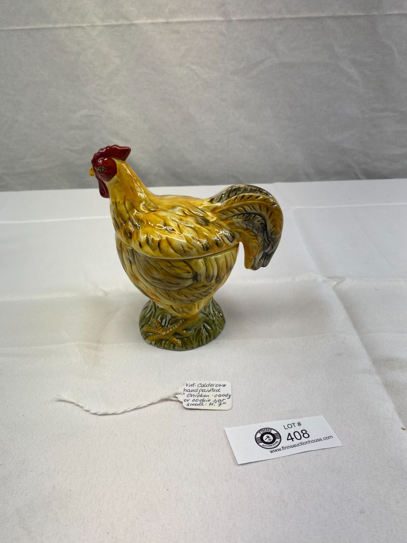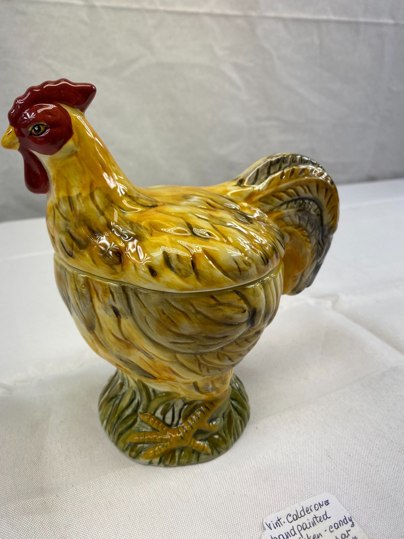 Vintage Calderone Hand painted Chicken, Candy Or Cookie Jar, 7"T