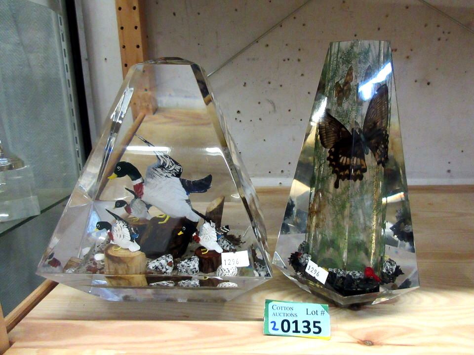 Ducks in Acrylic measure 10" tall and 7" x 7" at the base.