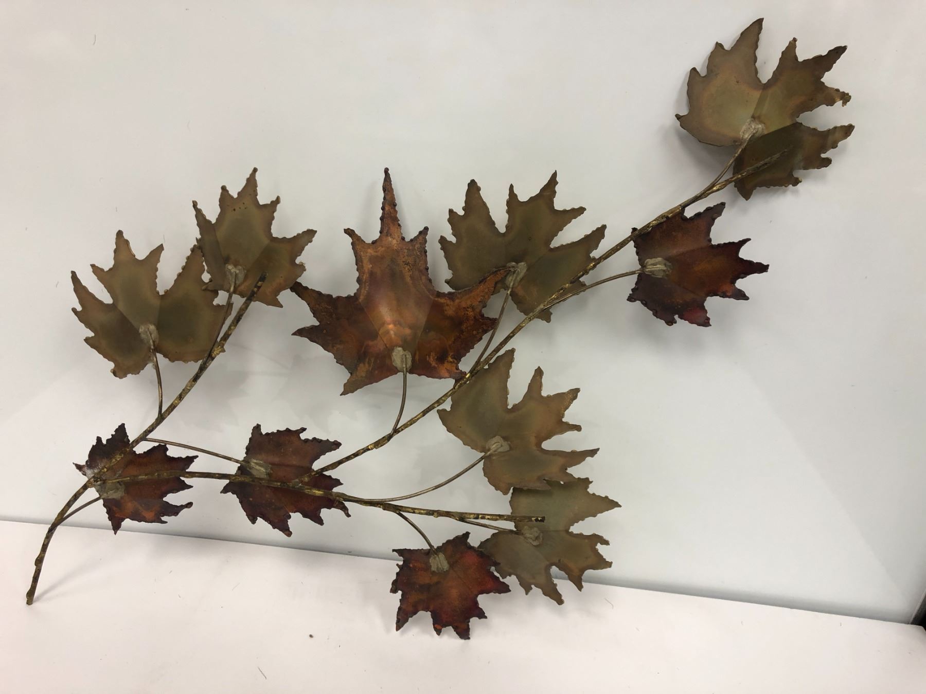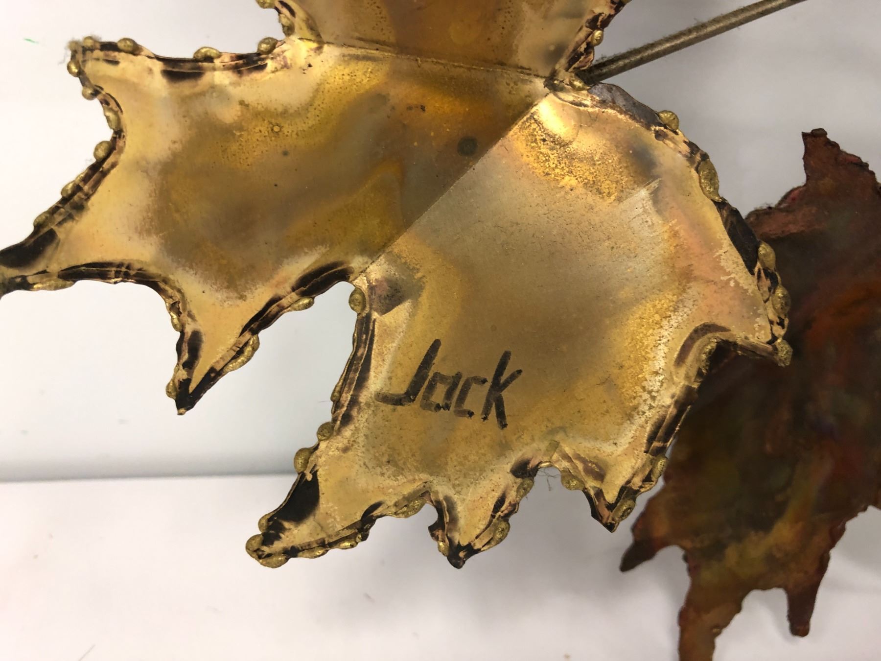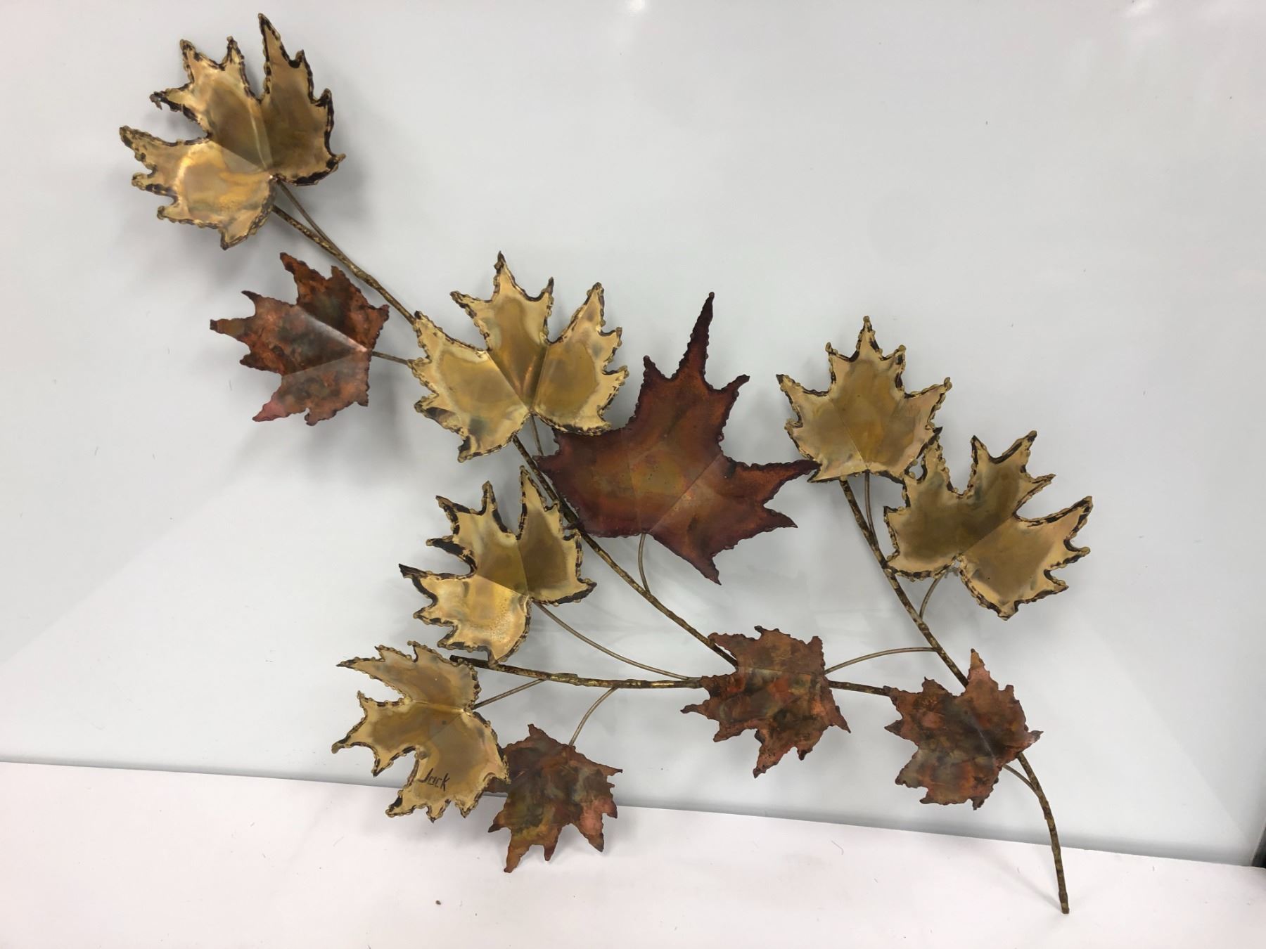 Vintage Canadian Maple Leaf metal wall art sculpture signed Jack - 27in across x 17in wide