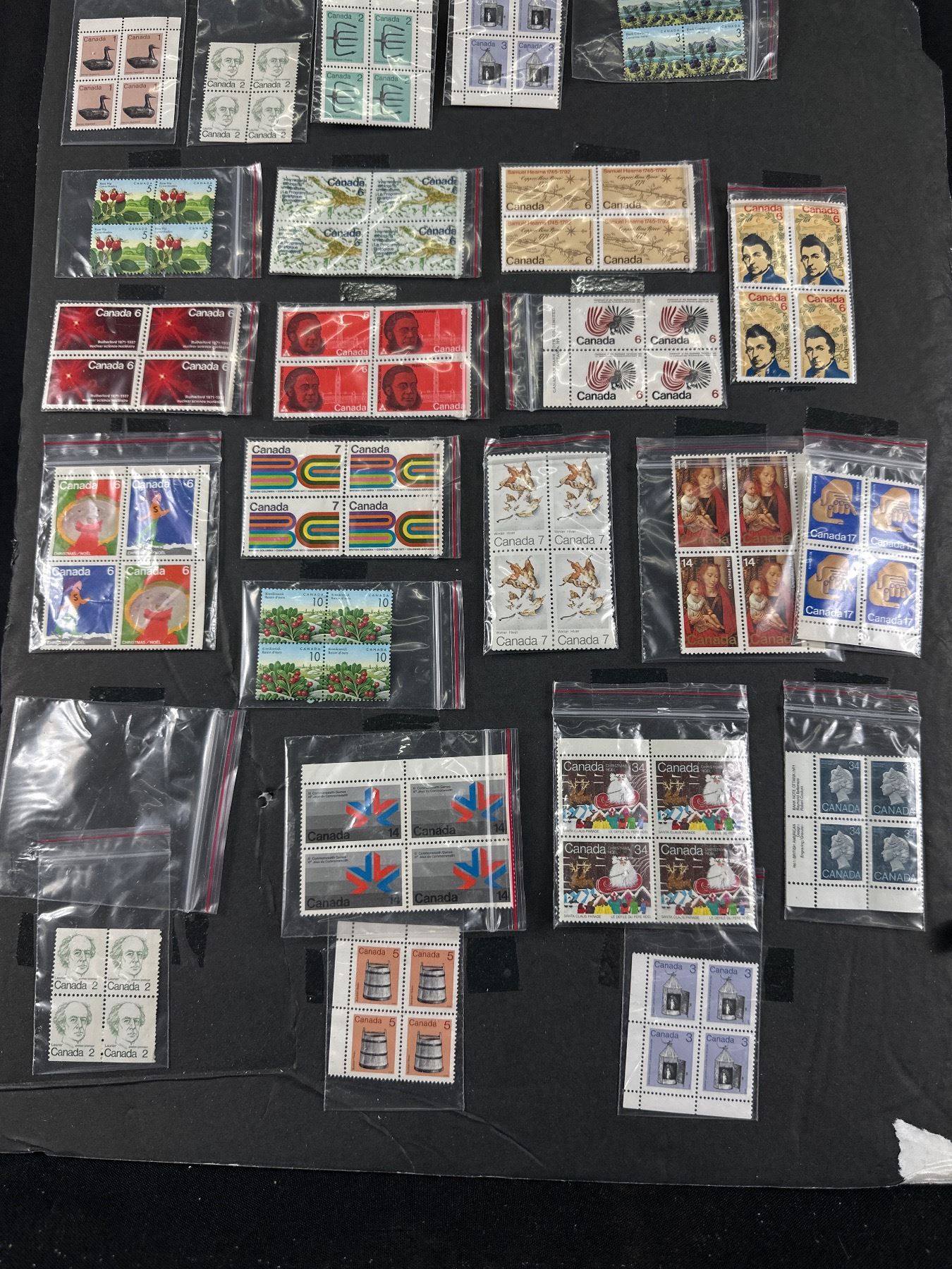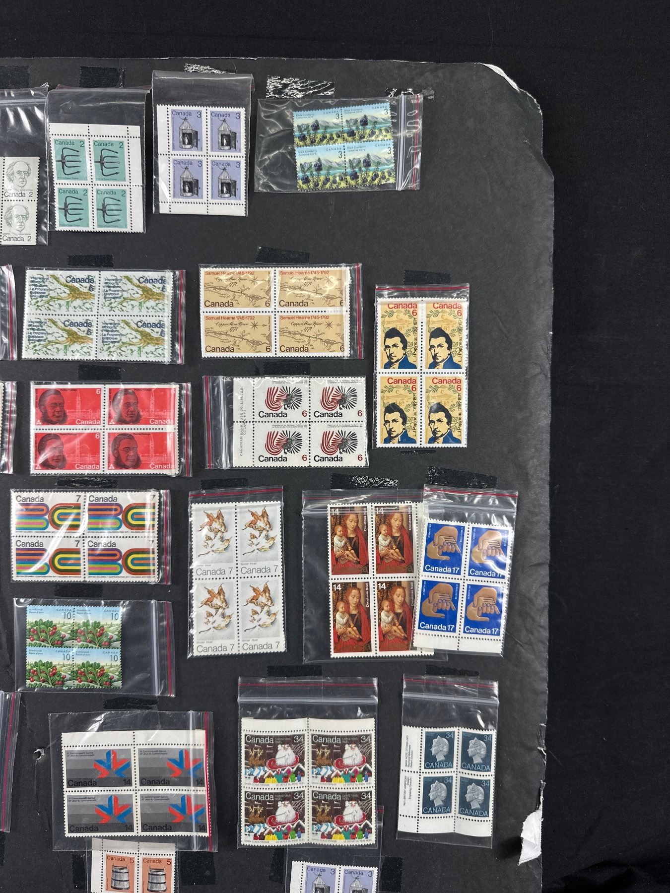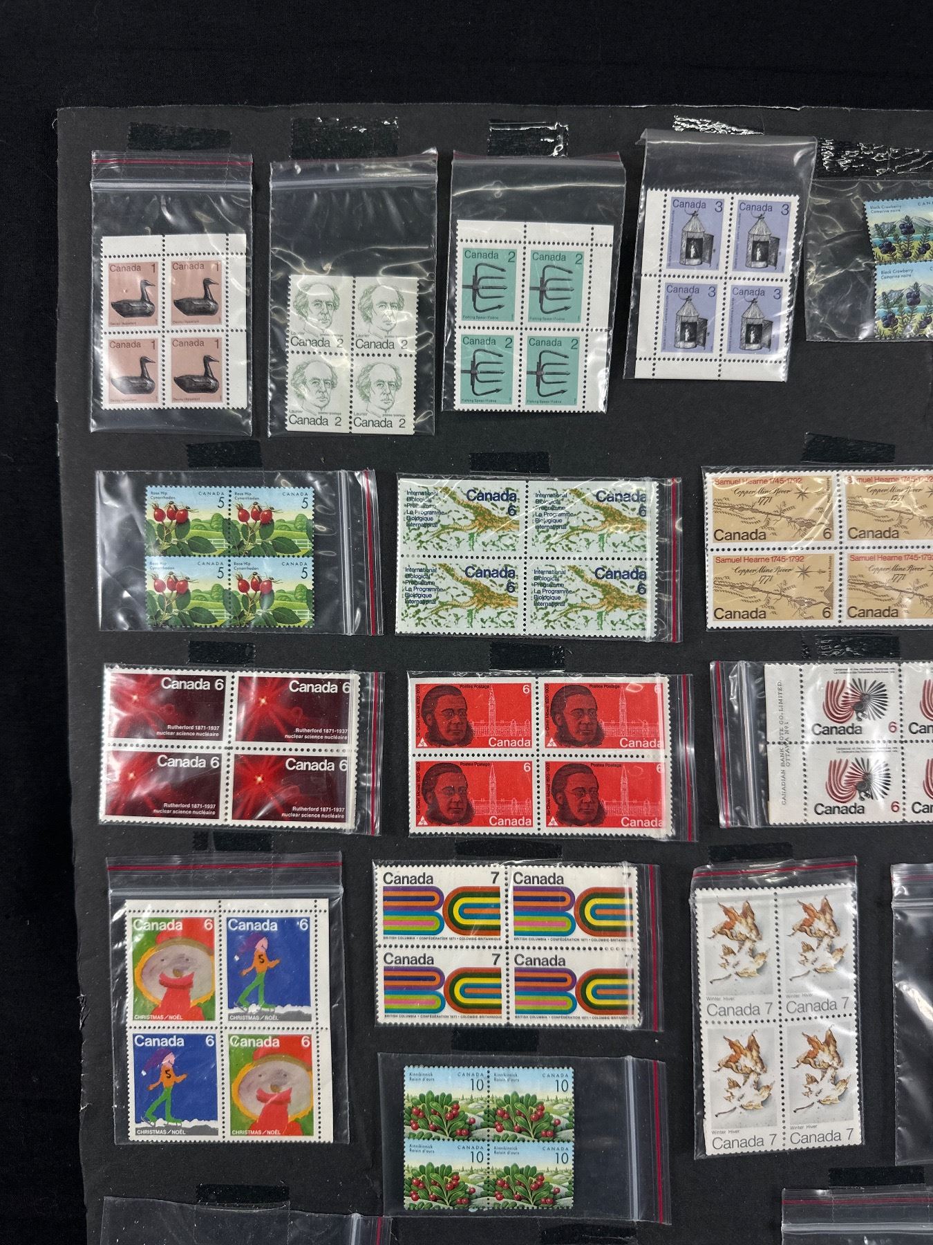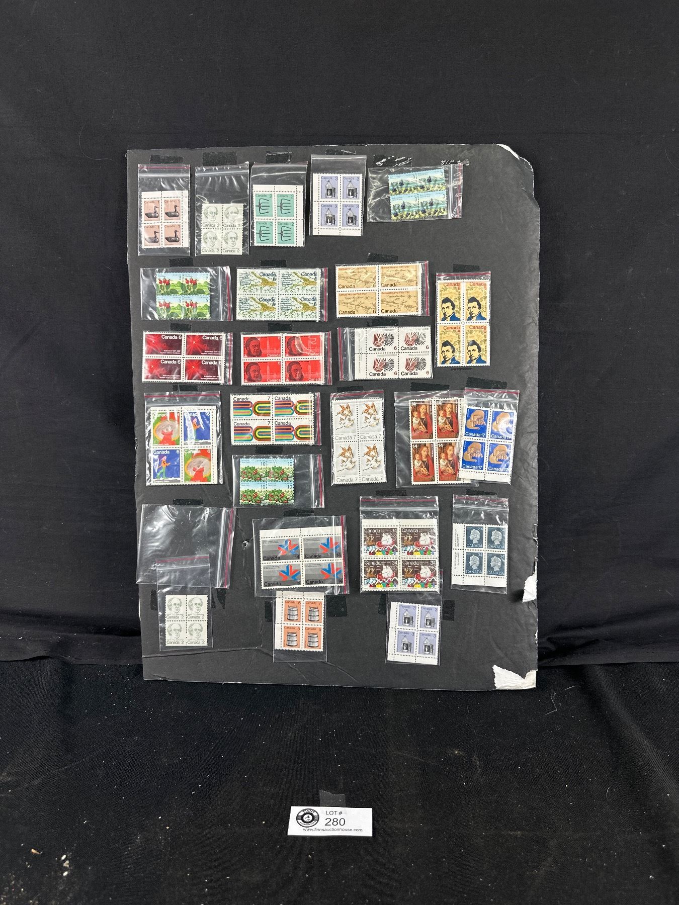 Vintage Canadian Stamp Collection In Sets Of 4 On Backboard
