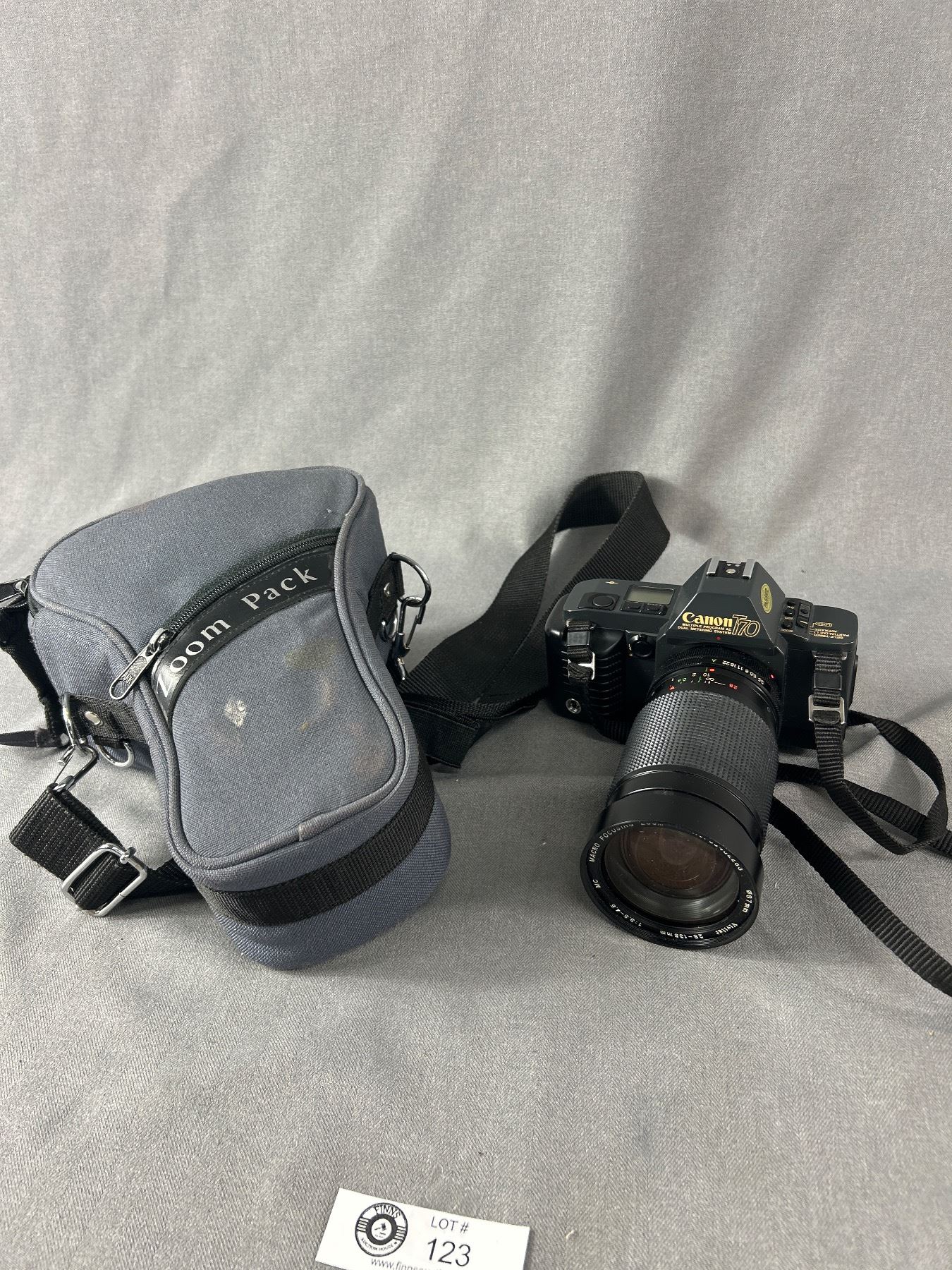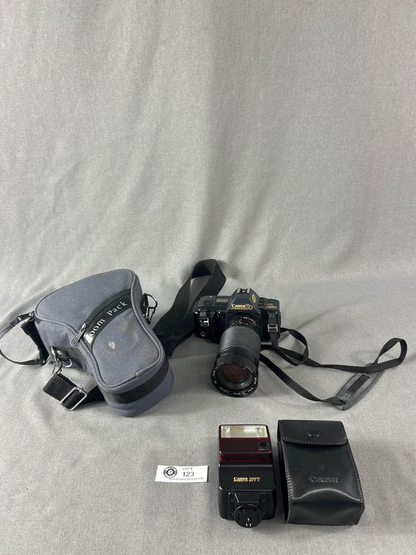 Vintage Canon T70 Film Camera, Vivitar Zoom 28-135mm, Canon 277T Flash & Ca