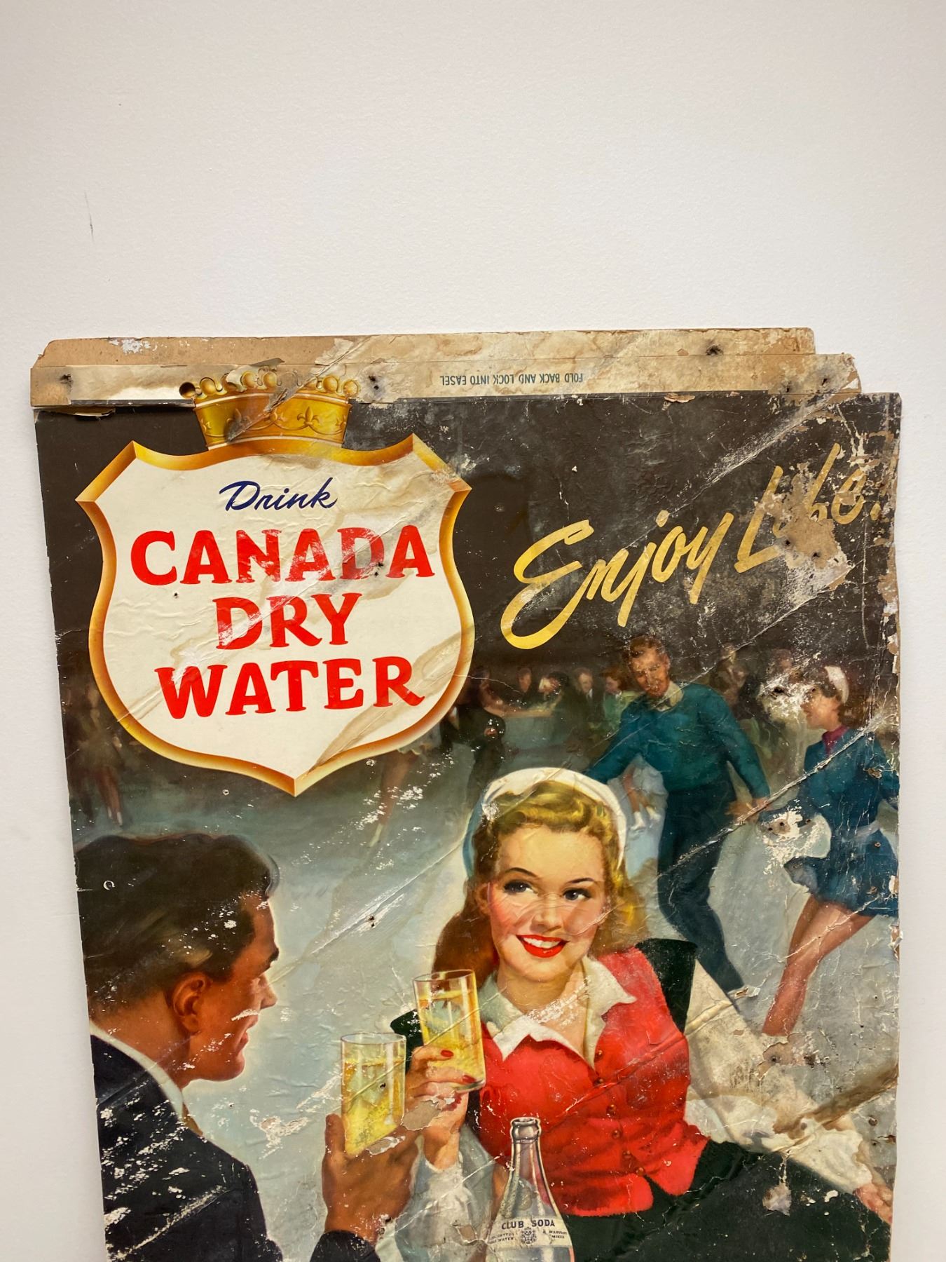 Vintage cardboard. Canada Dry Poster. Shows wear and damaged corner, it still nice. Local Pickup Only due to size 28 x43