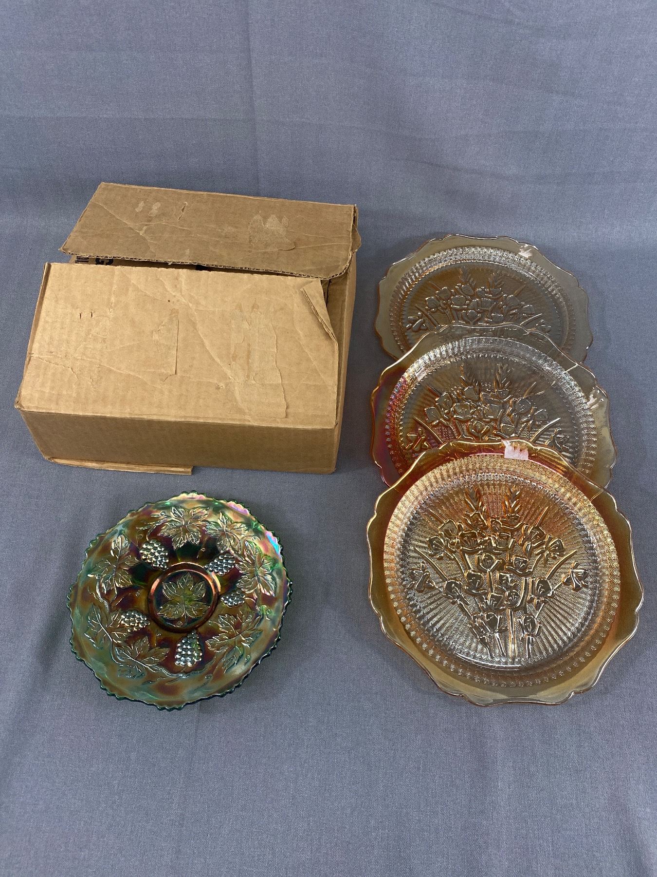 Vintage Carnival Glass Lot - 12 Punch Bowl Glasses & Plates