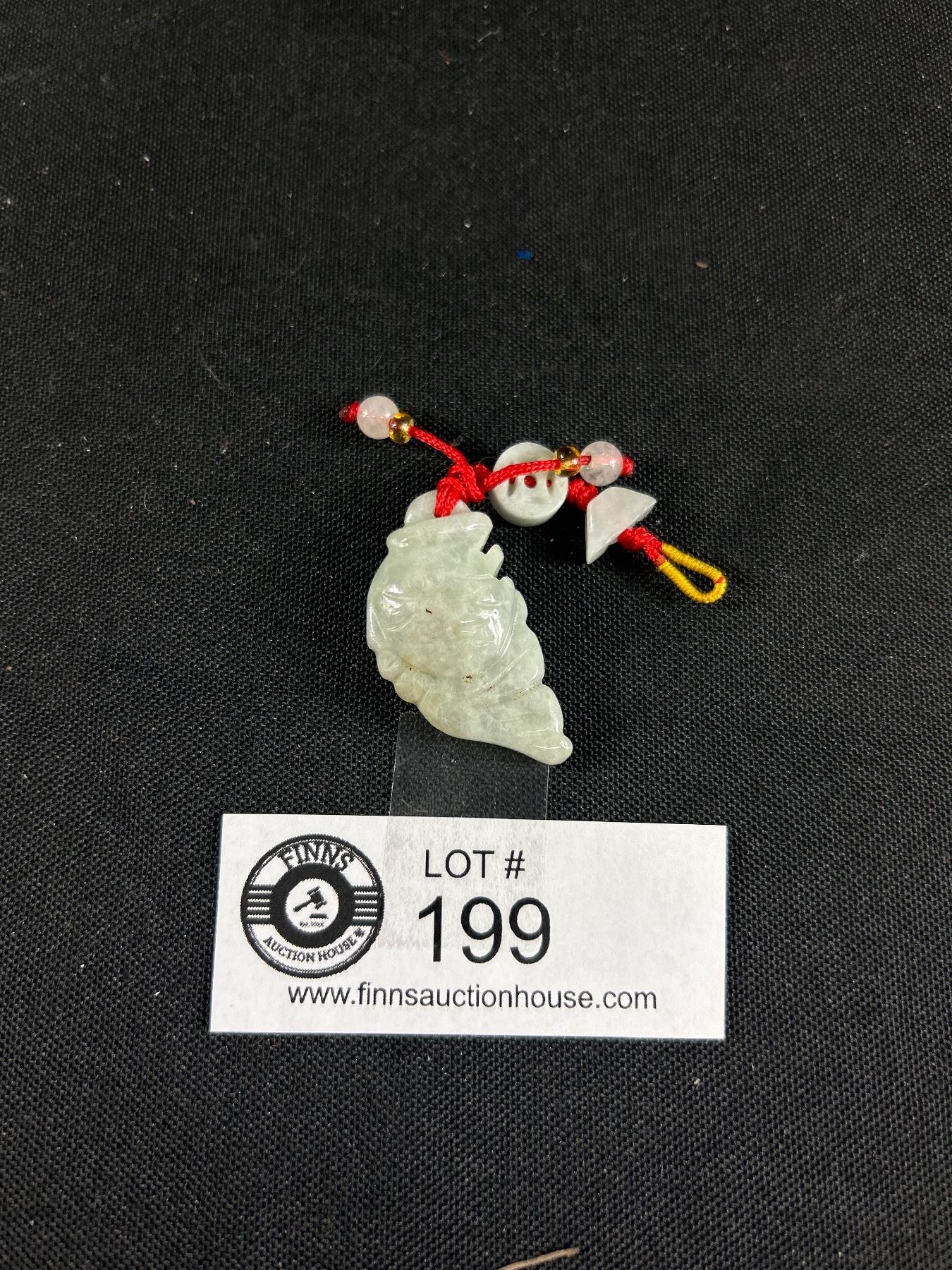 Vintage Carved Greyish Green Chinese Jade Pendant in Good Condition