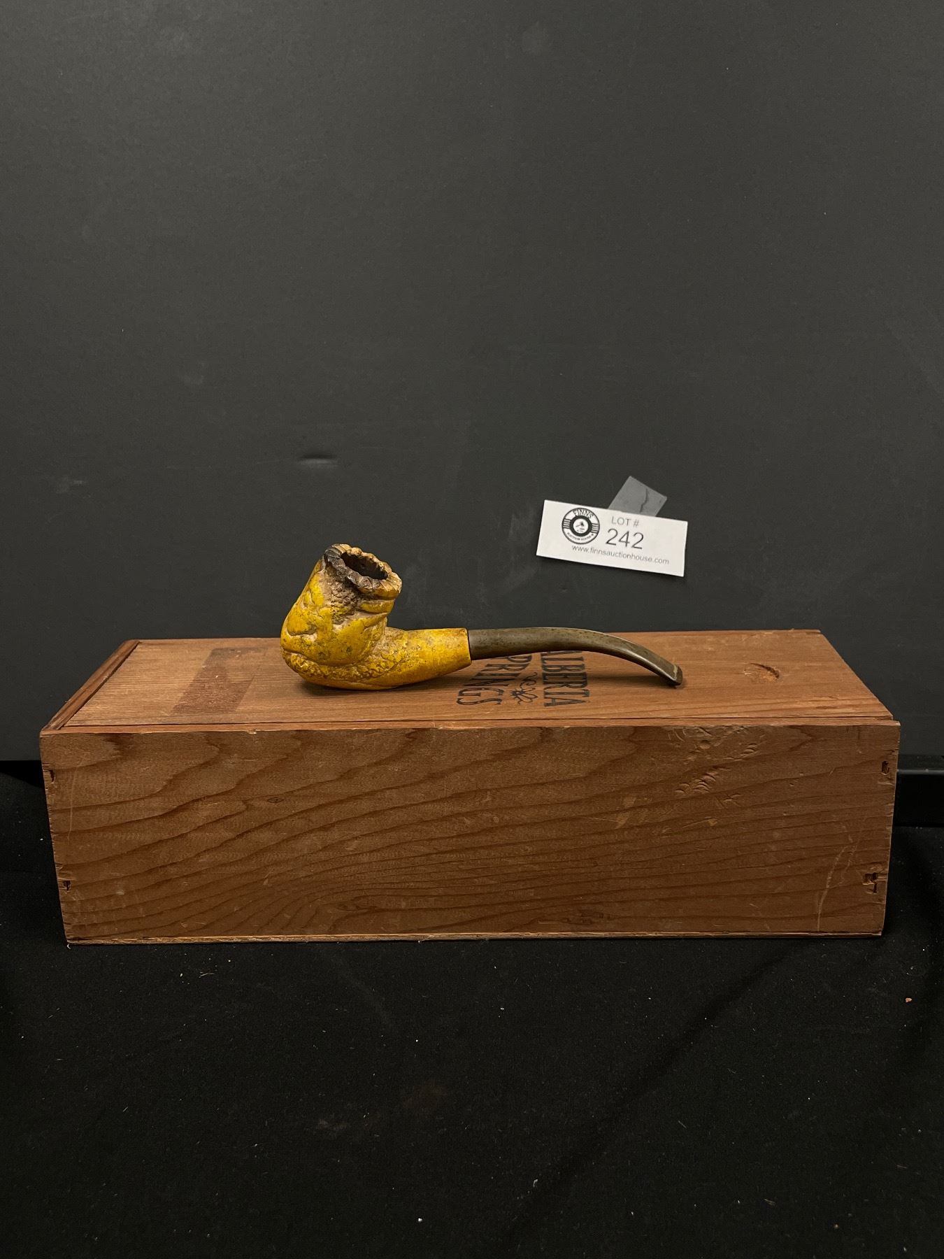 Vintage Carved Pipe With Black Ladies On It and A Wooden Box
