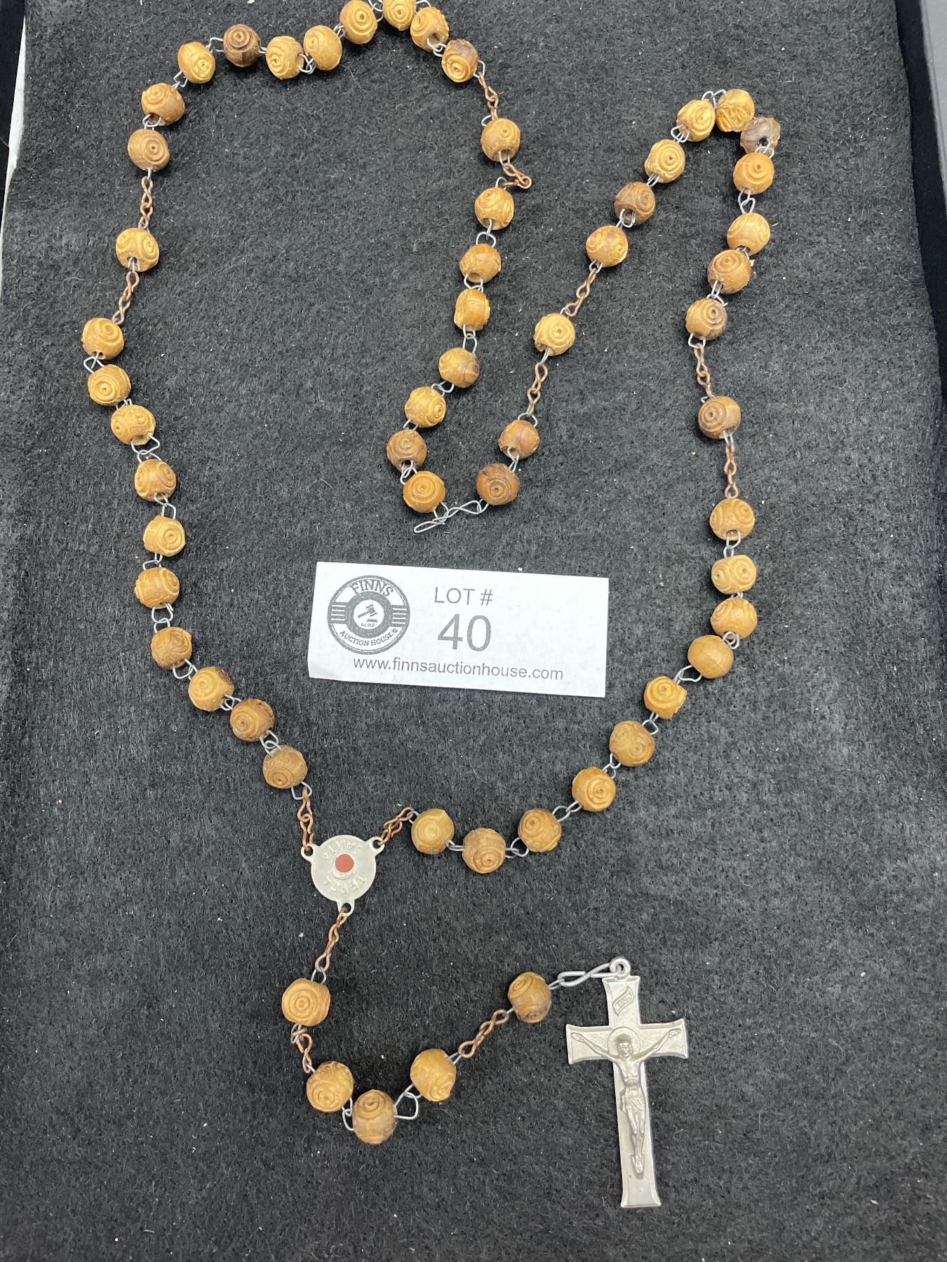 Vintage Carved Wood Beaded Rosary