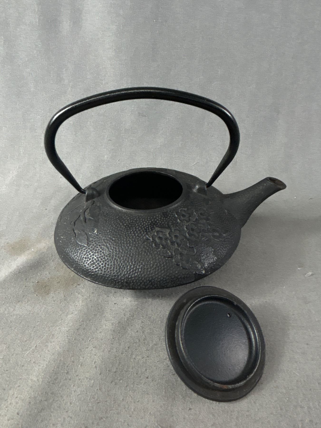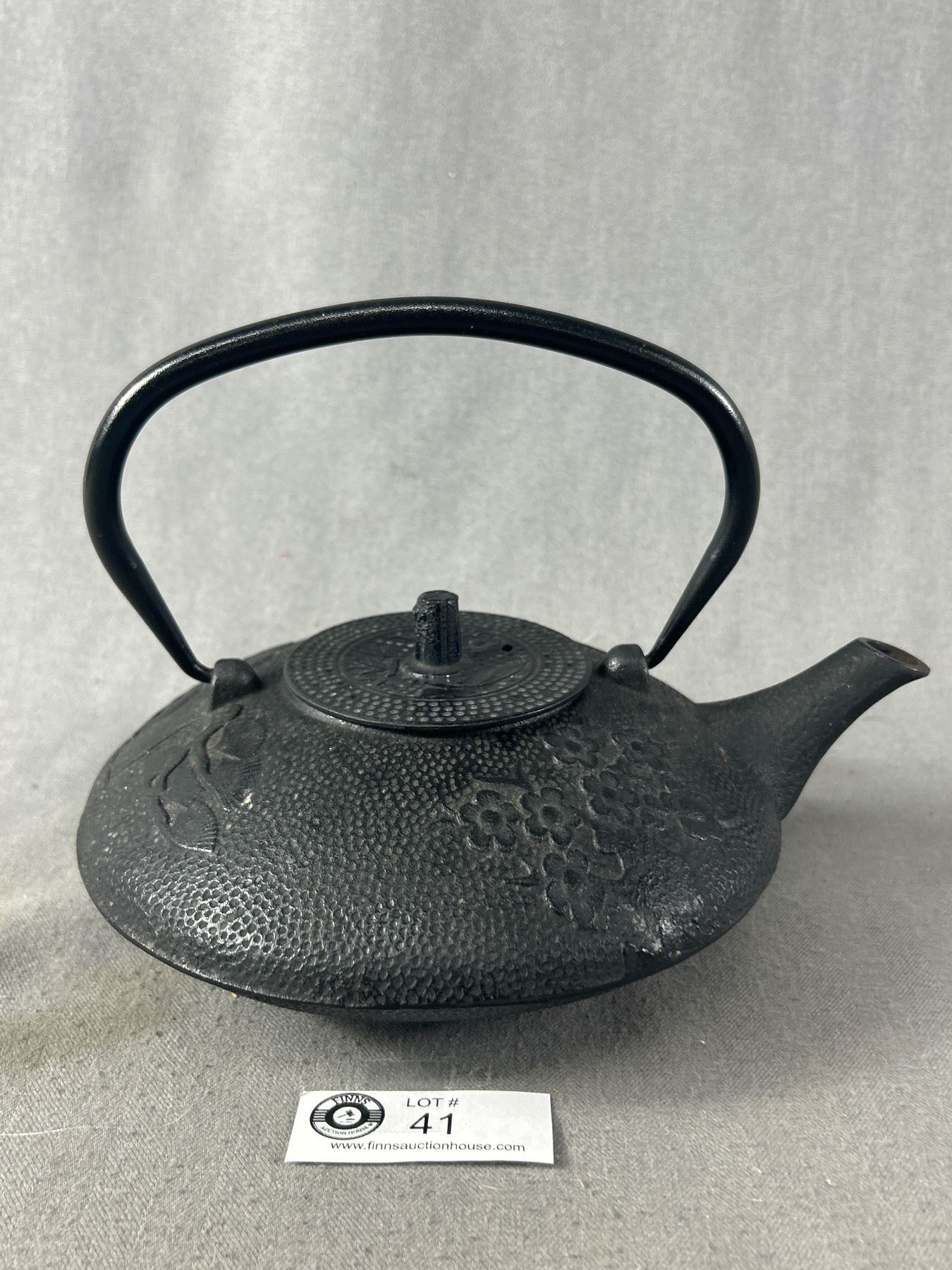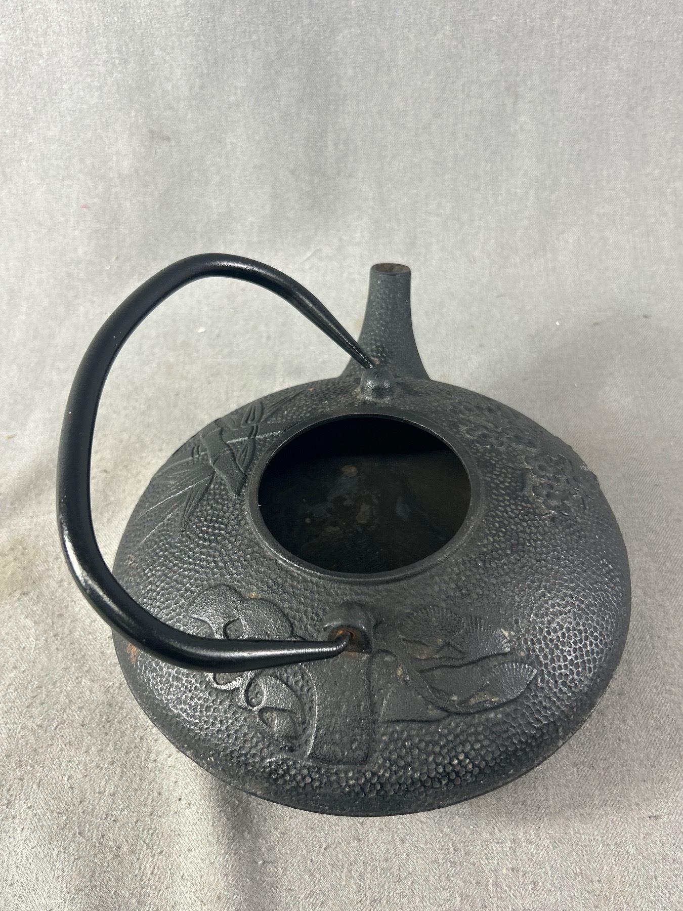 Vintage Cast Iron Bamboo Design Teapot w/ Rigid Handle