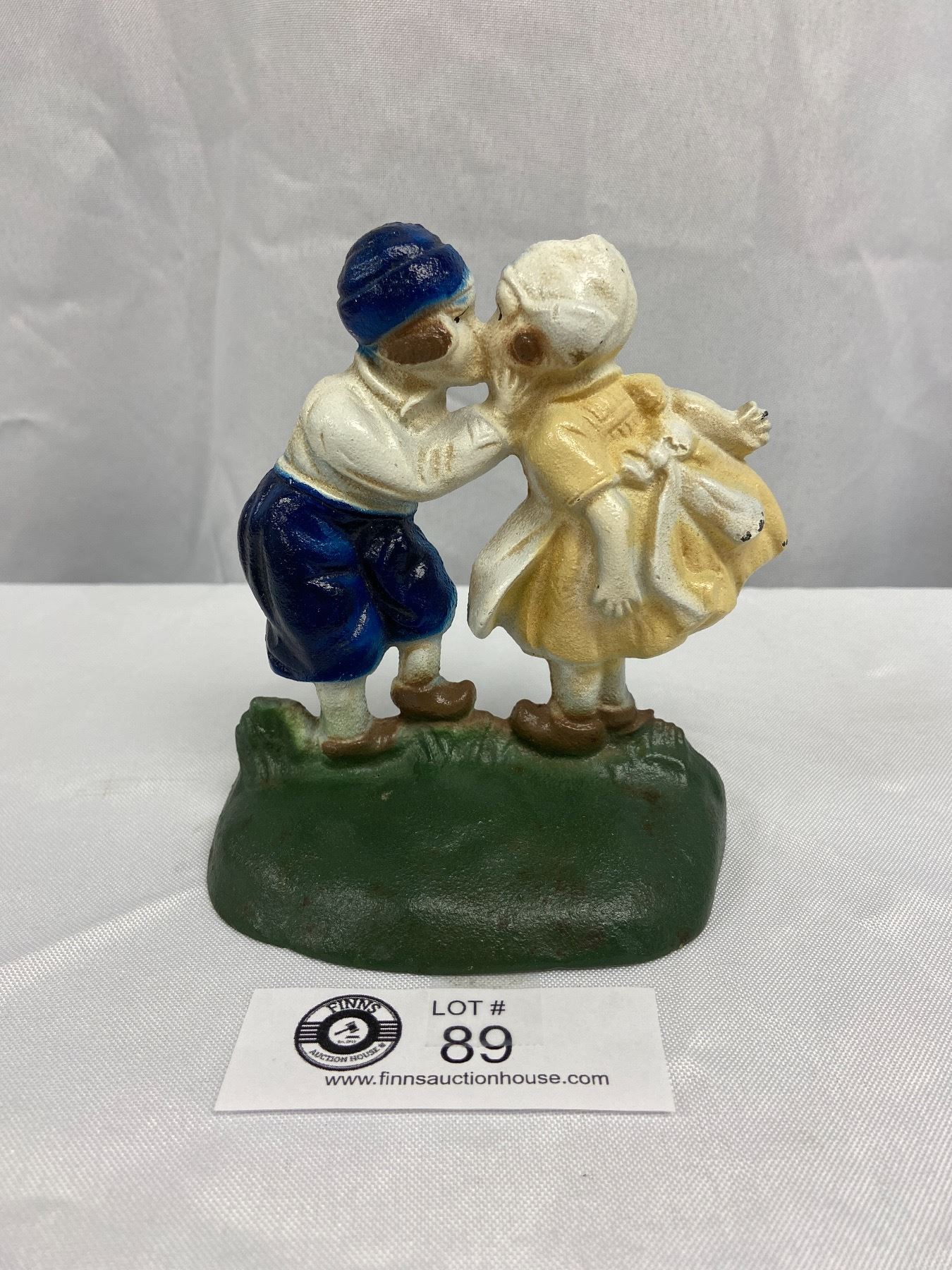 Vintage Cast Iron Hubley Door Stop Kissing Dutch Boy & Girl