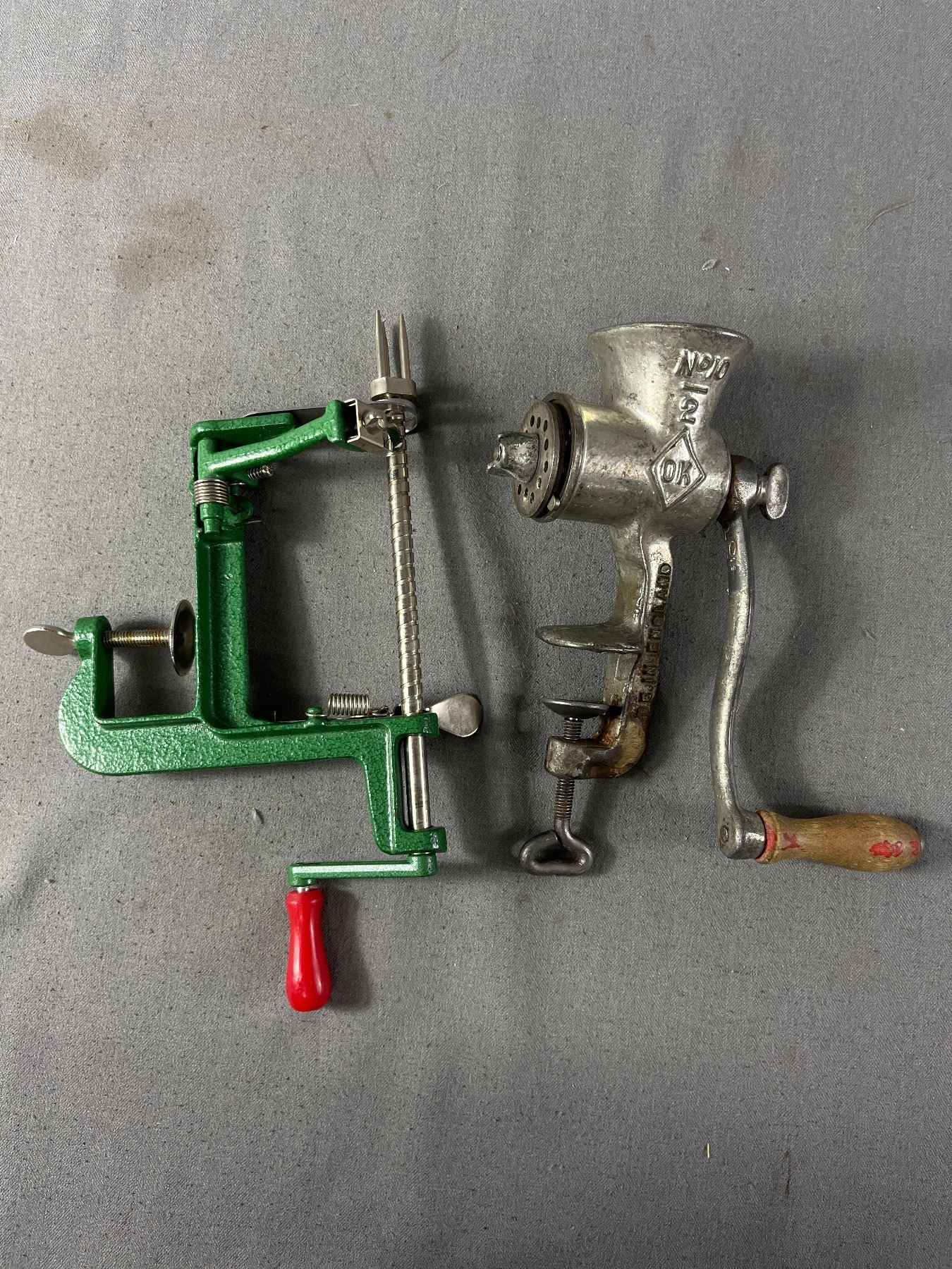 Vintage Cast Iron Tabletop Food Grinder - England & Apple Peeler/Corer/Slicer