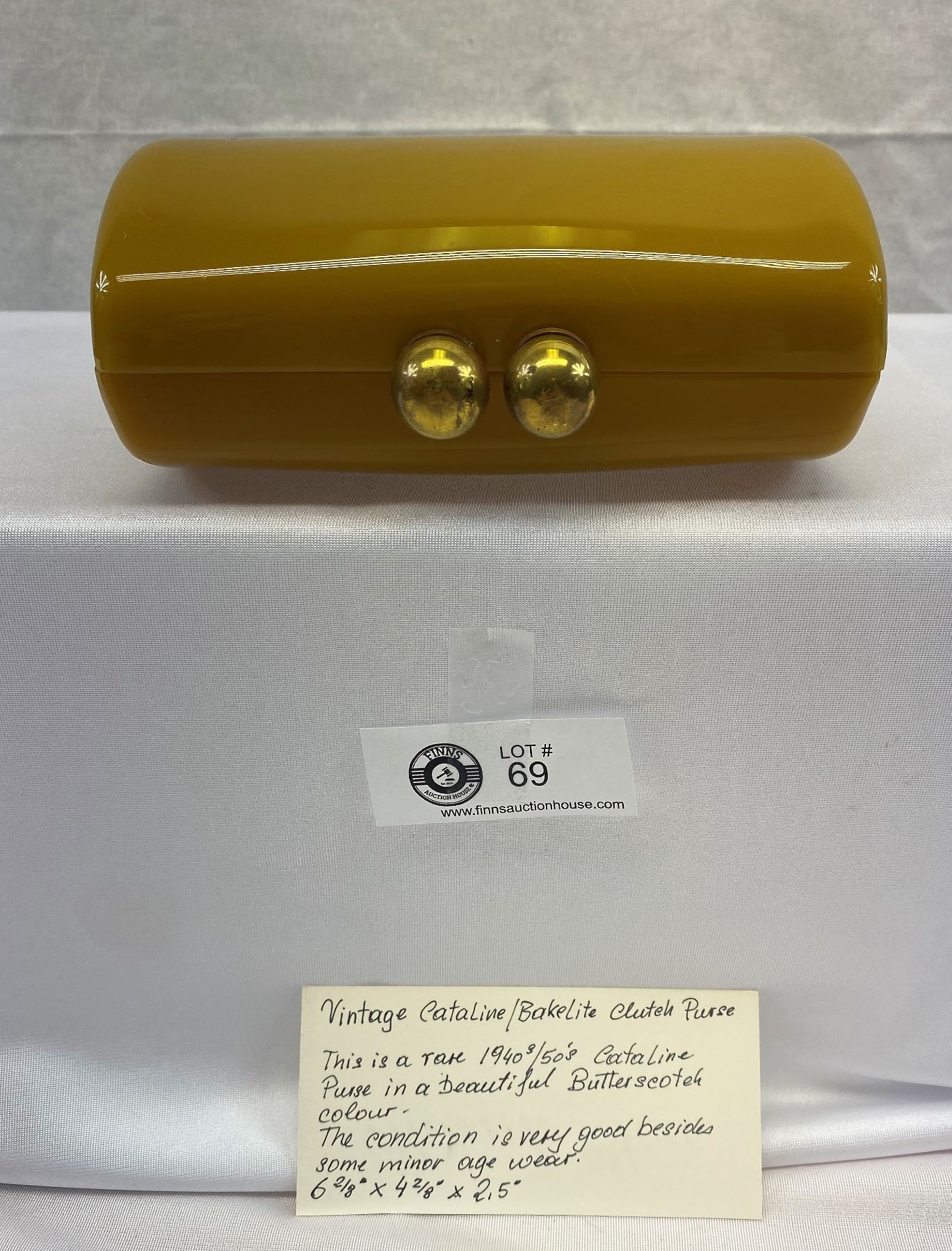Vintage Cataline/Bakelite Clutch Purse, Rare 1940's/50's Purse IN Beautiful Condition, Butterscotch Colour, 6"x4"x3"