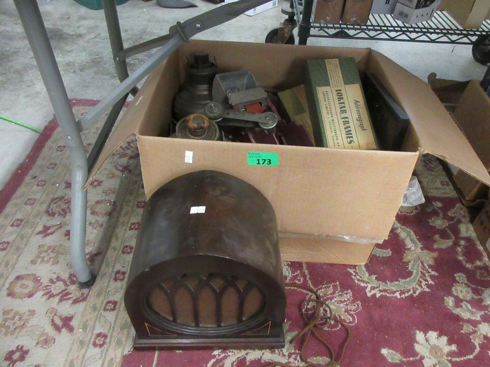 Oil lamps, Addressograph frames and more.