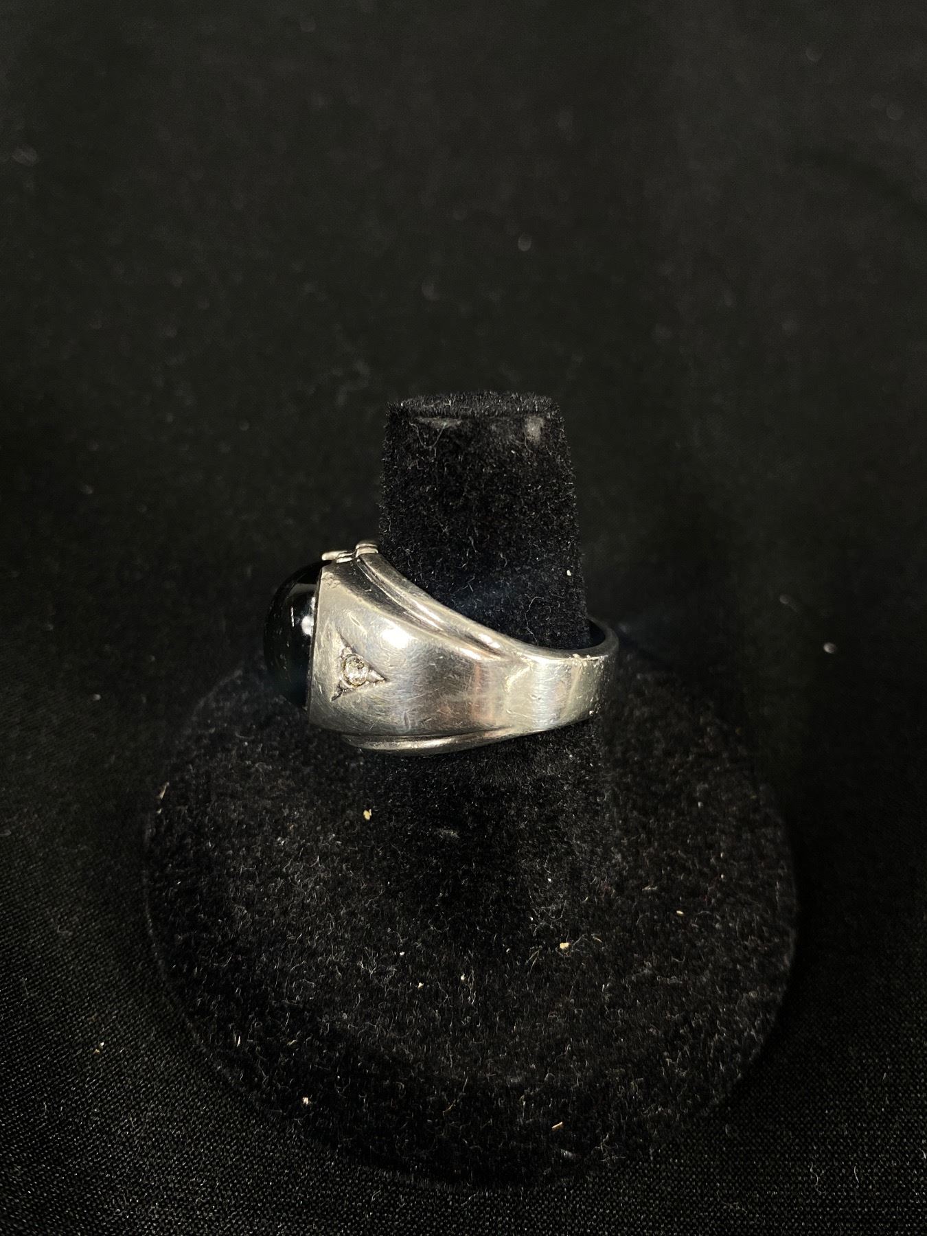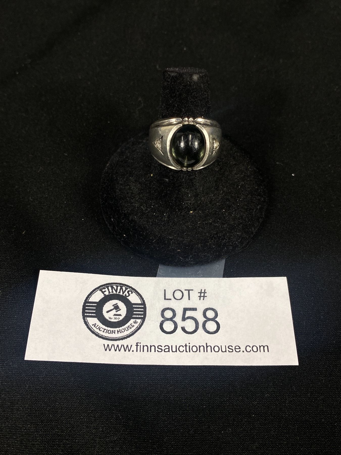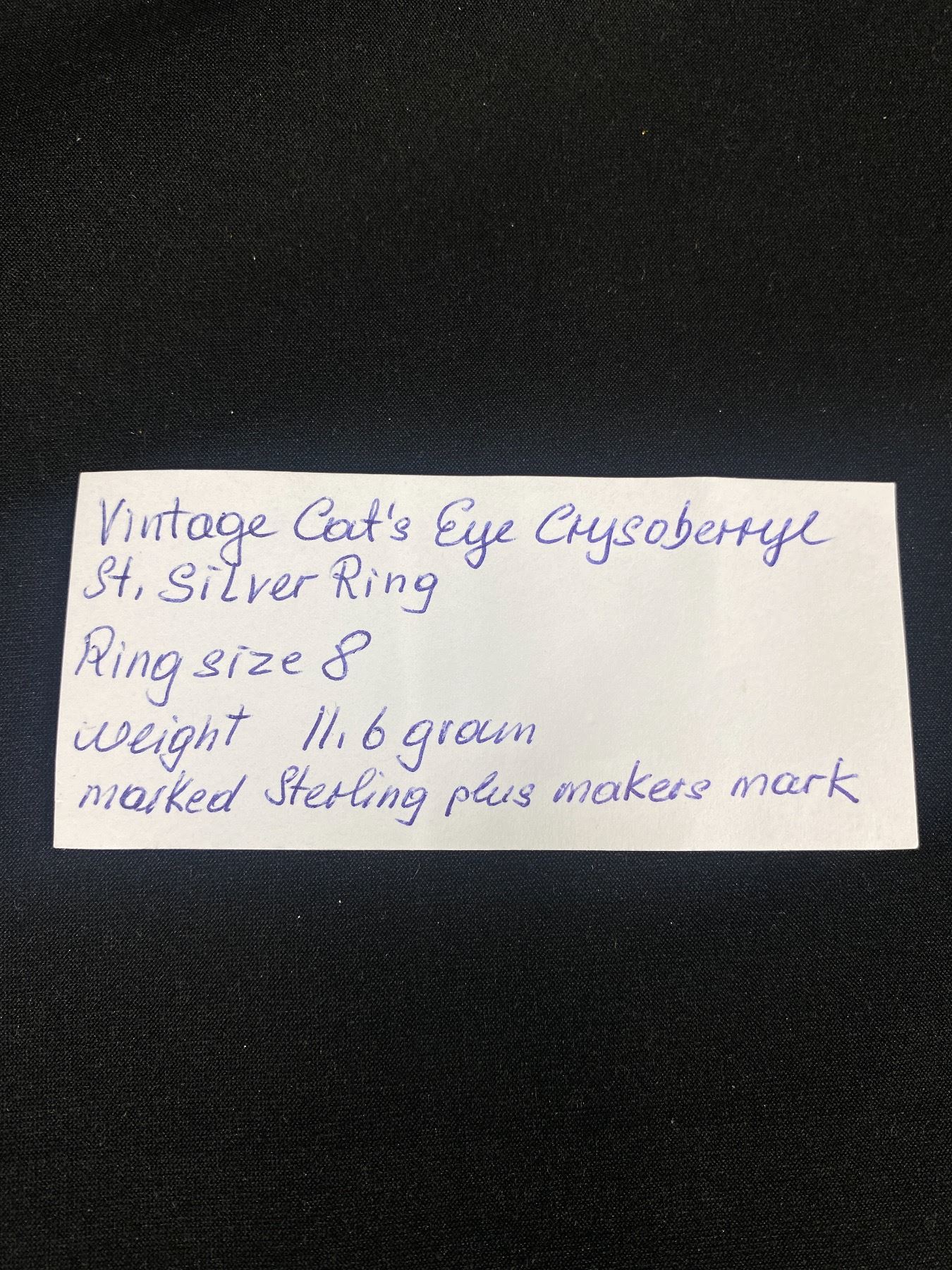 Vintage Cats Eye Chrysoberyl Sterling Silver Ring Size 8 Weight 11.6 Grams Marked Sterling Plus Makers Mark
