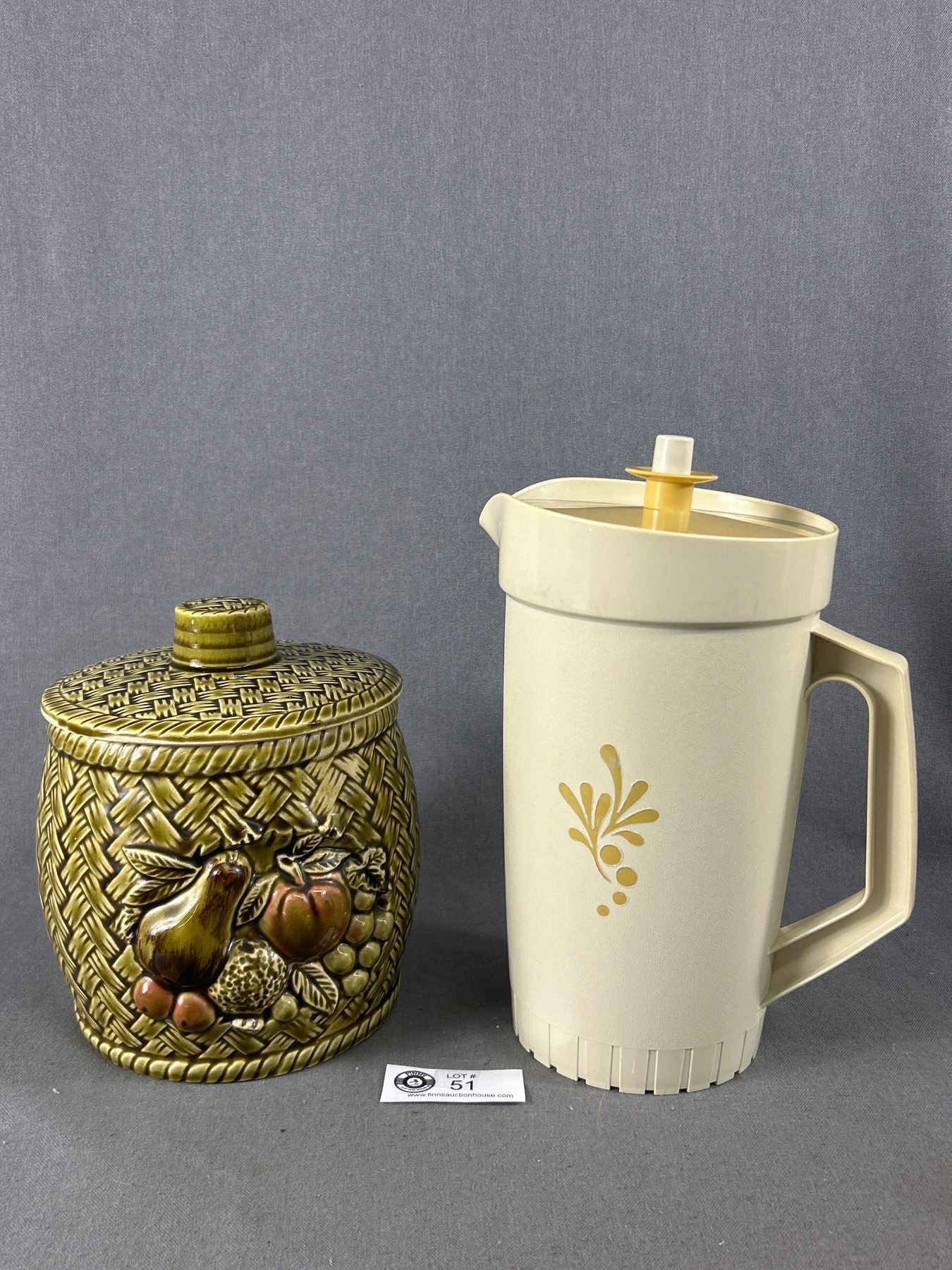 Vintage Ceramic Cookie Jar & Tupperware Jug