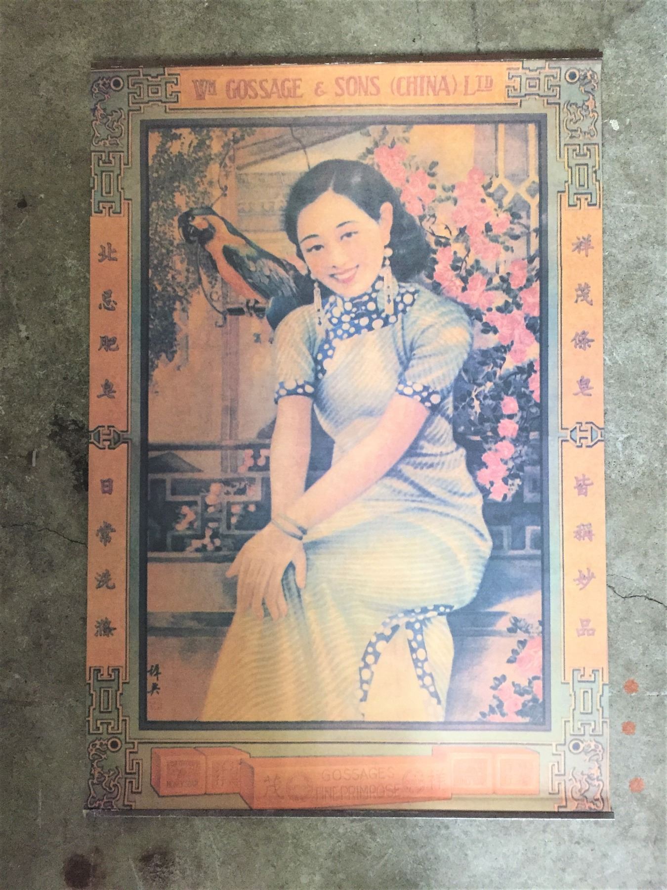 Vintage Chinese Advertising Poster with Metal Ends 20.5" x 30"