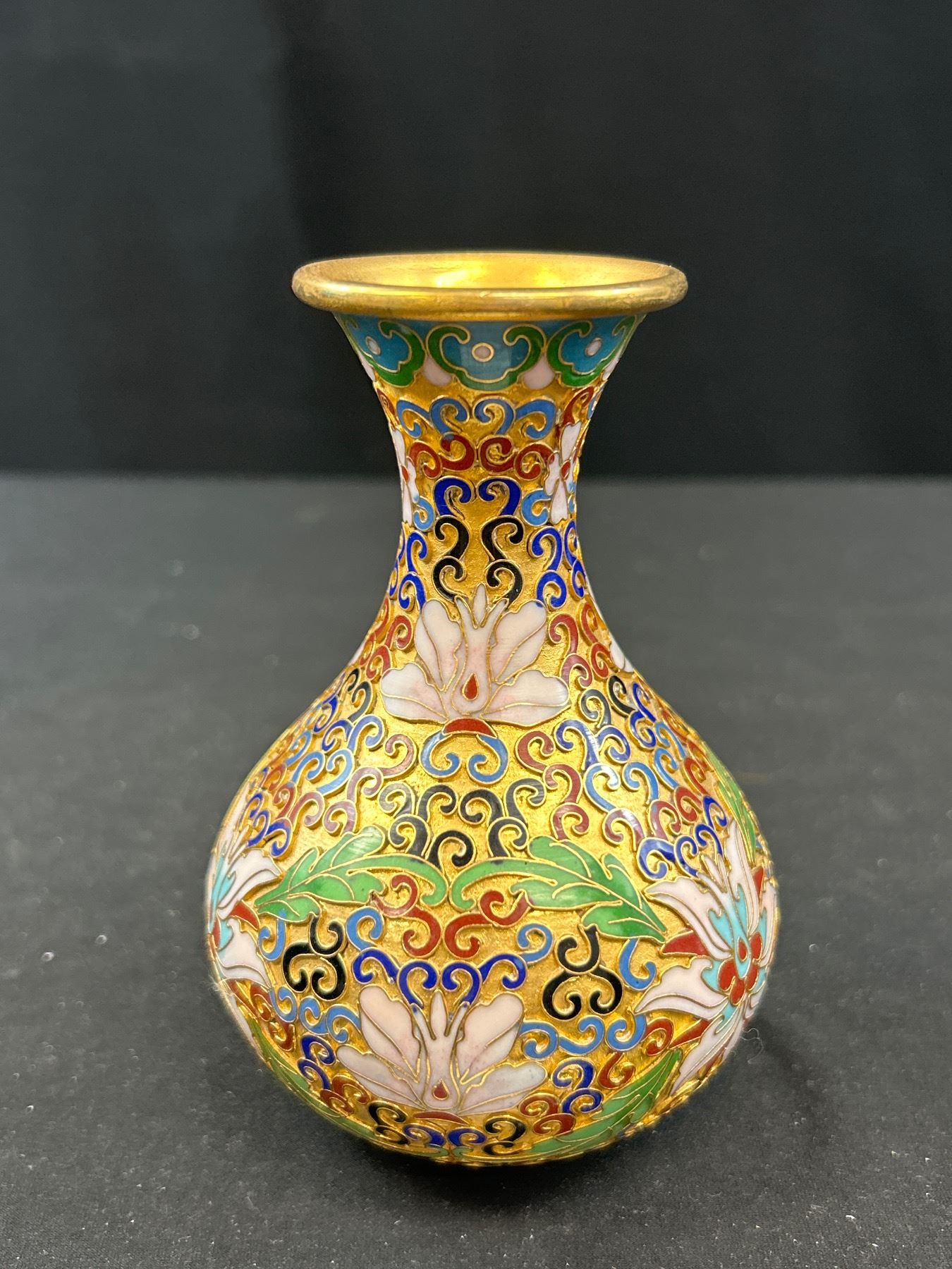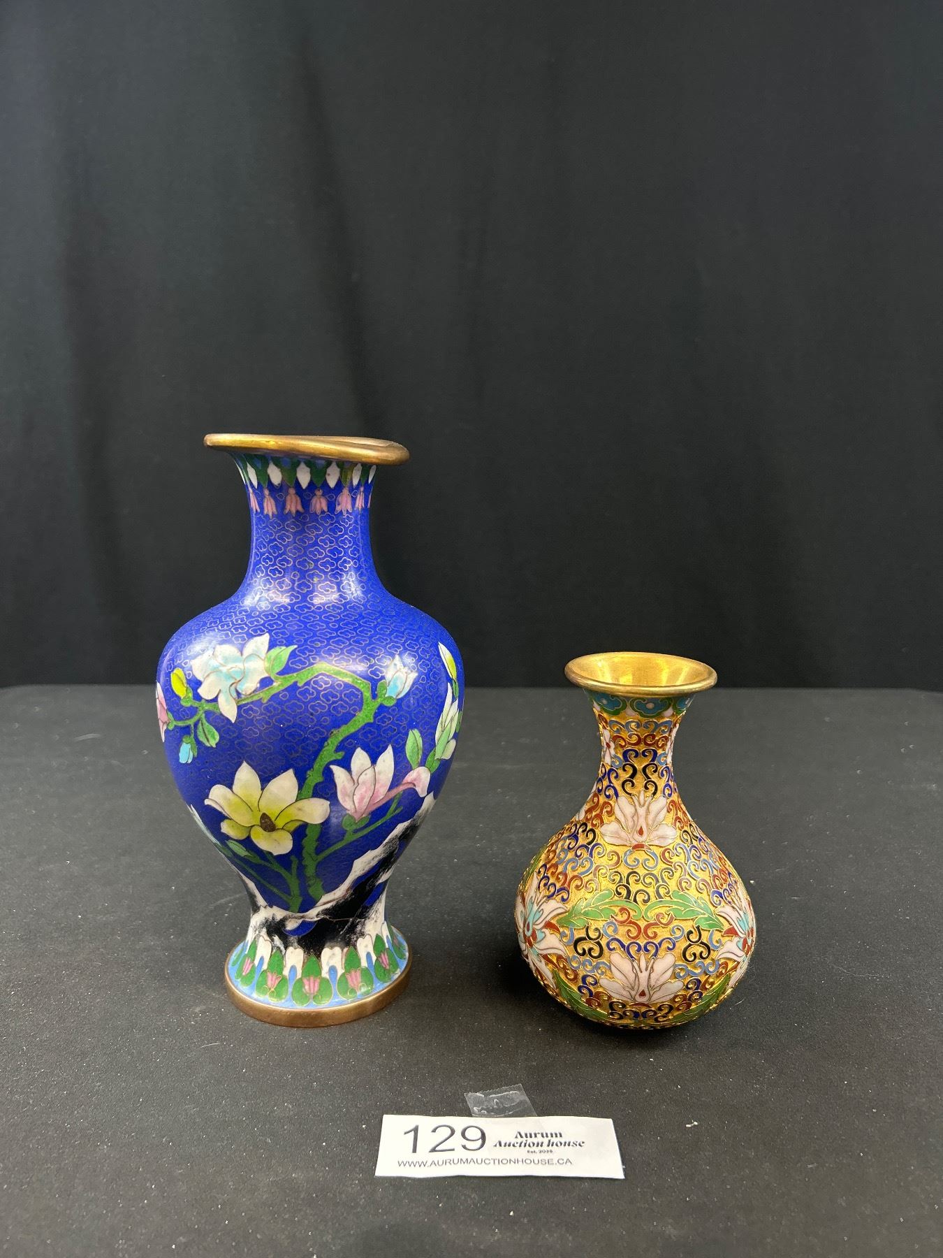 Vintage Chinese Oriental Asian Floral Enameled Cloisonne Vases 8.24" and 5 1/8th" Tall