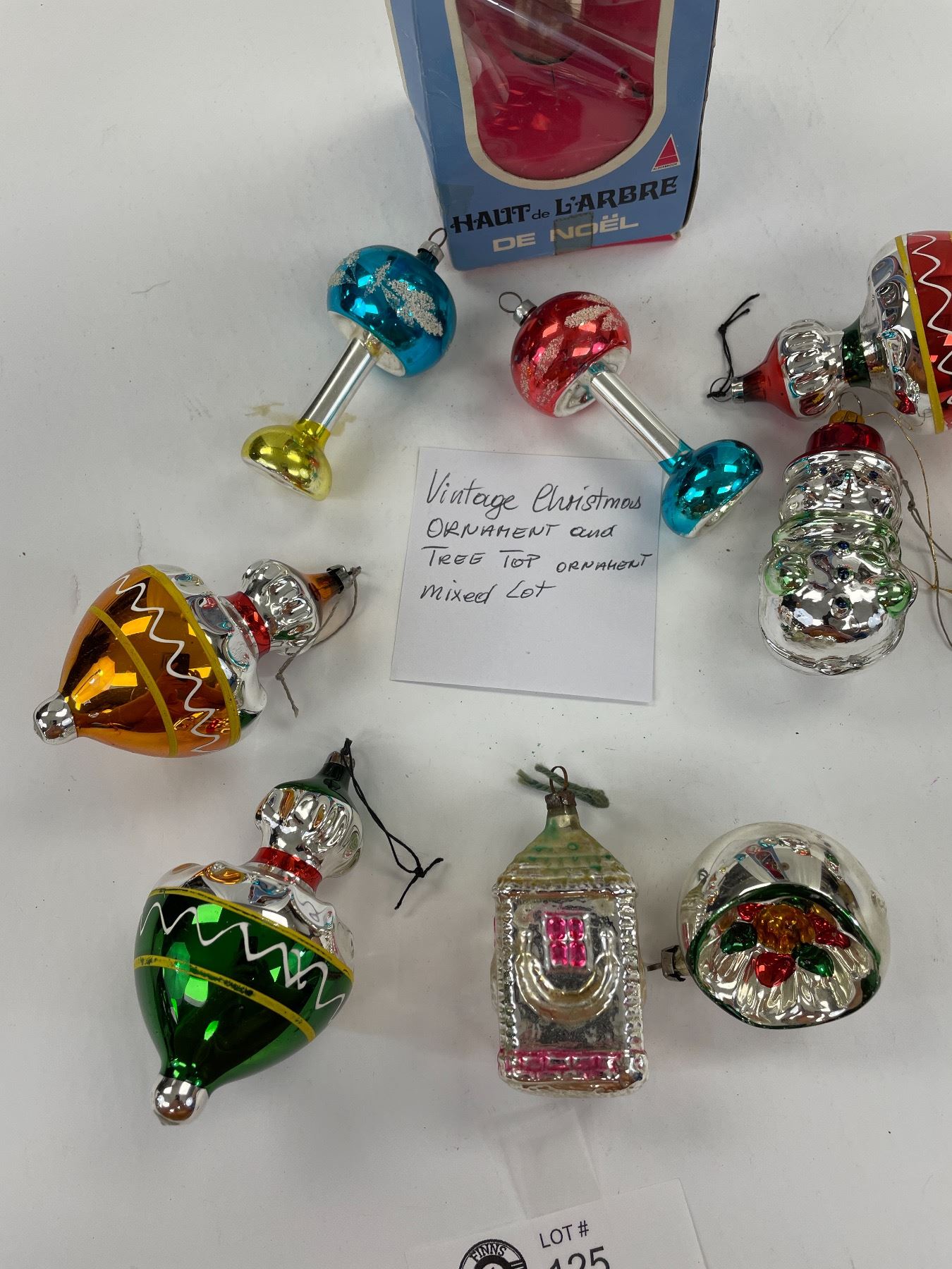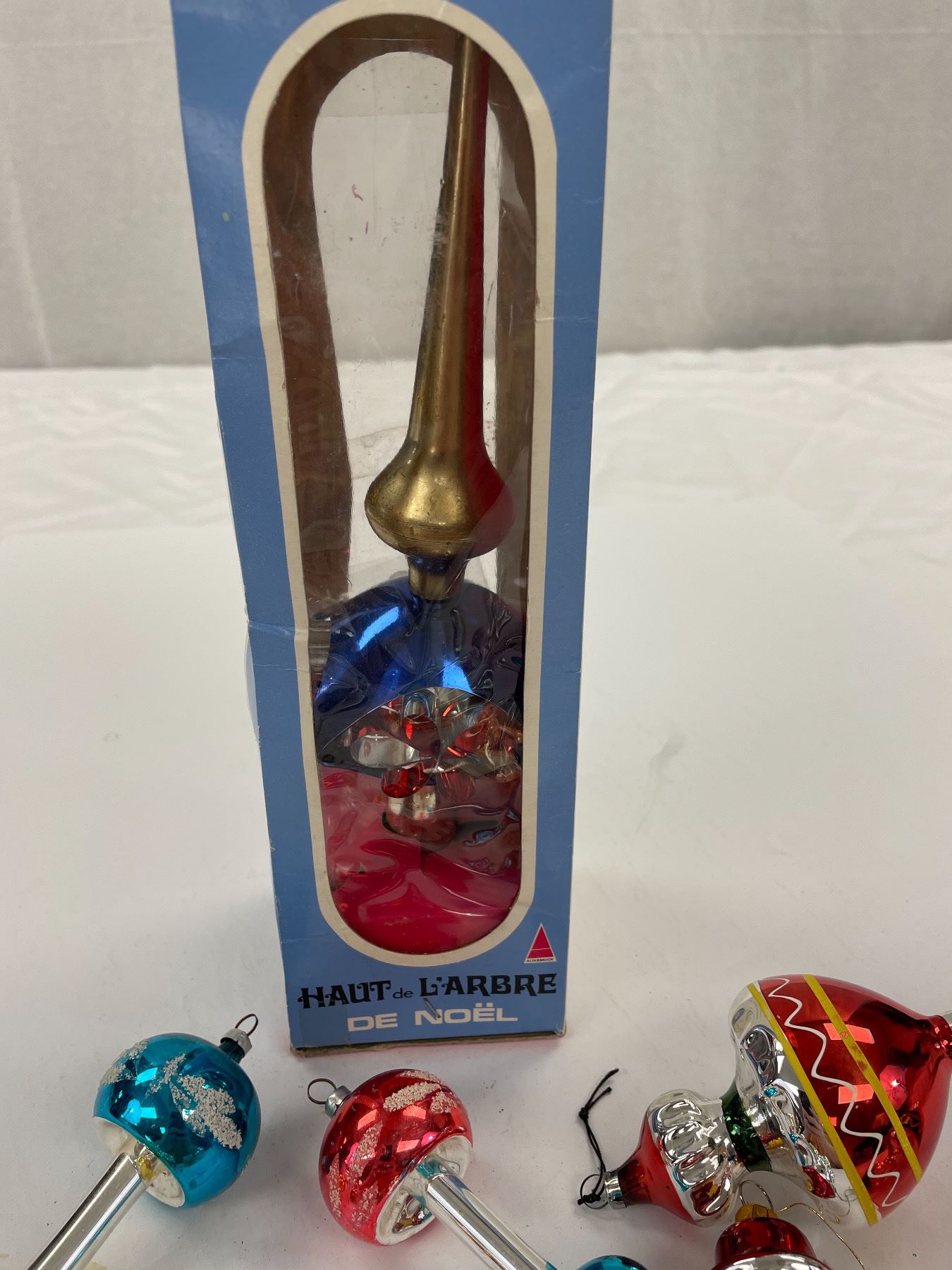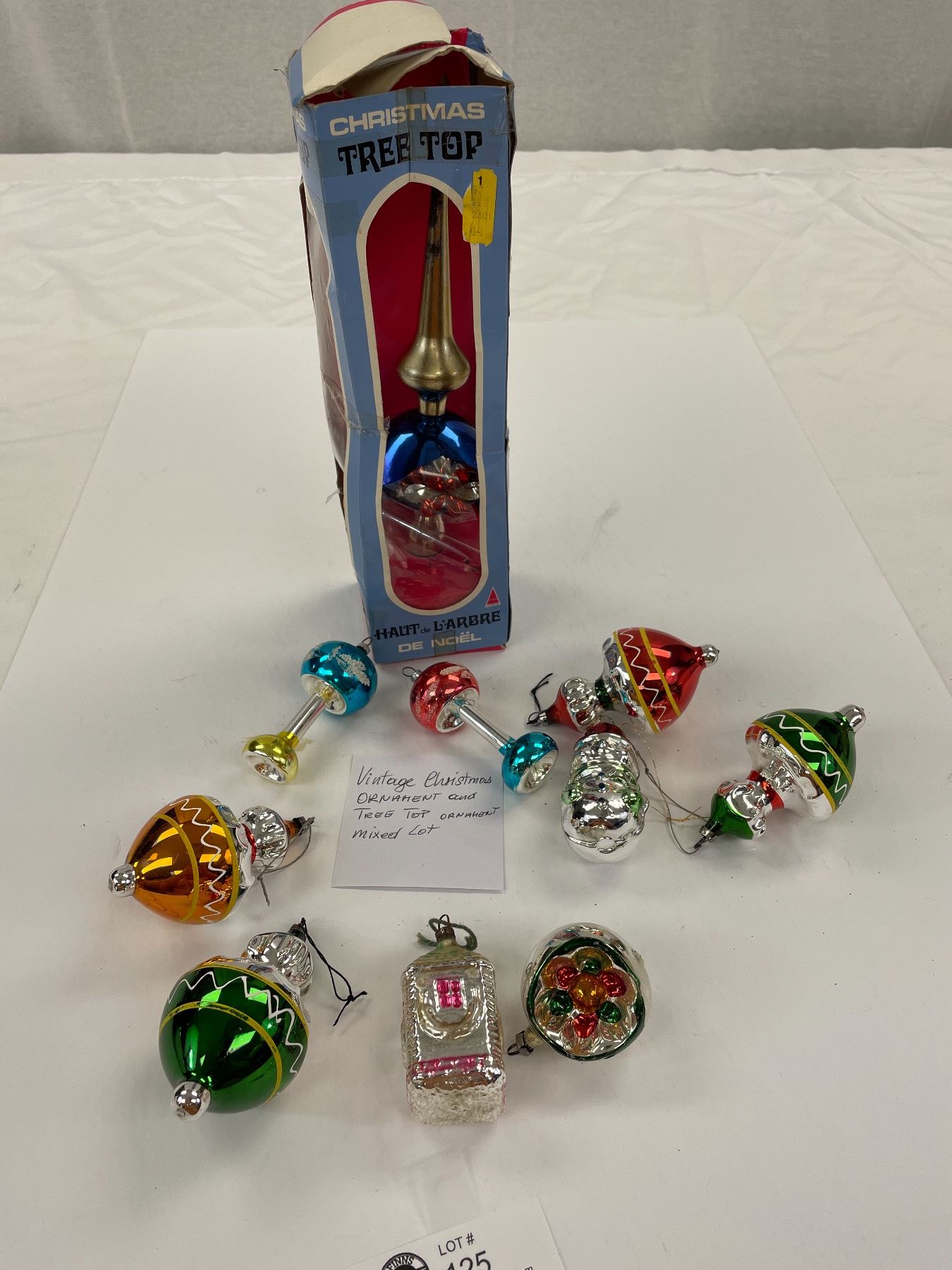 Vintage Christmas Ornament and Treetop Ornament All in Nice Shape