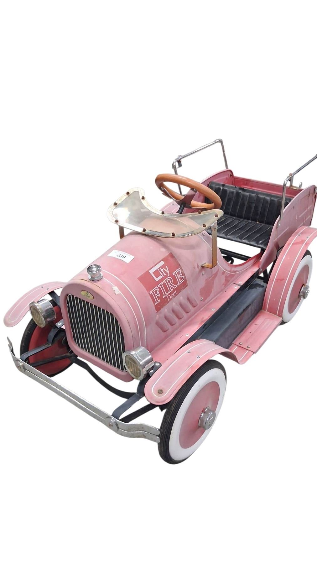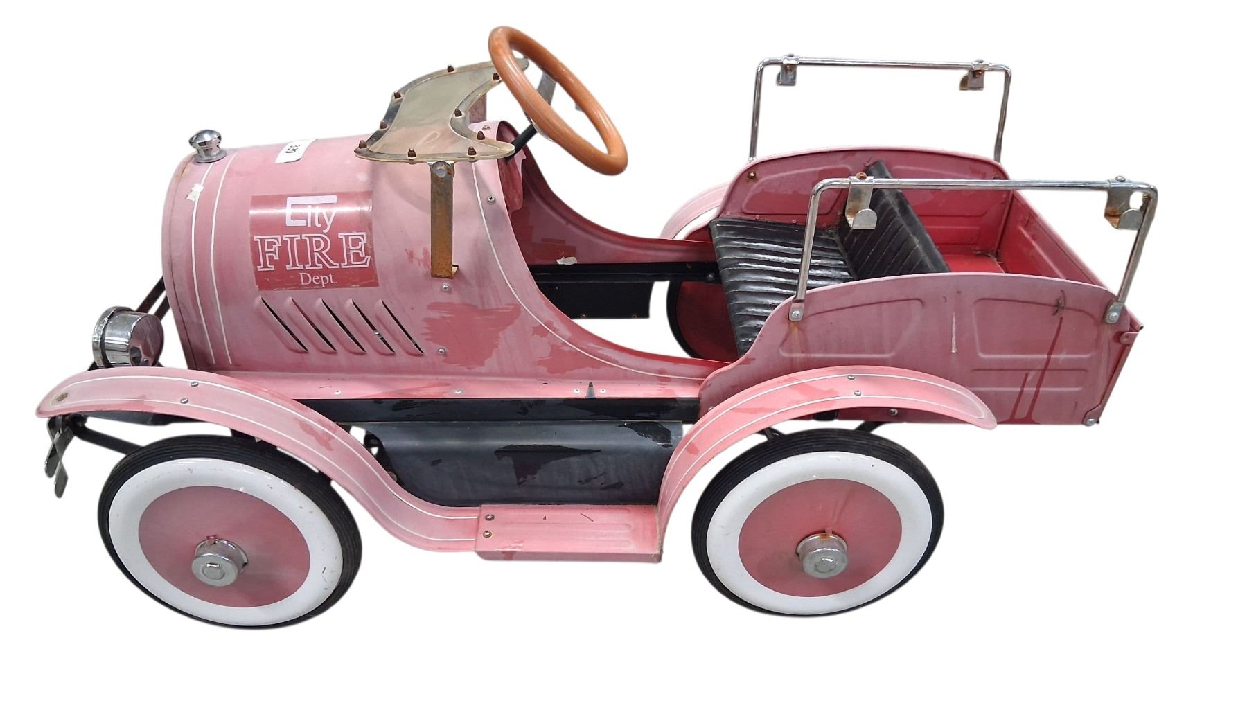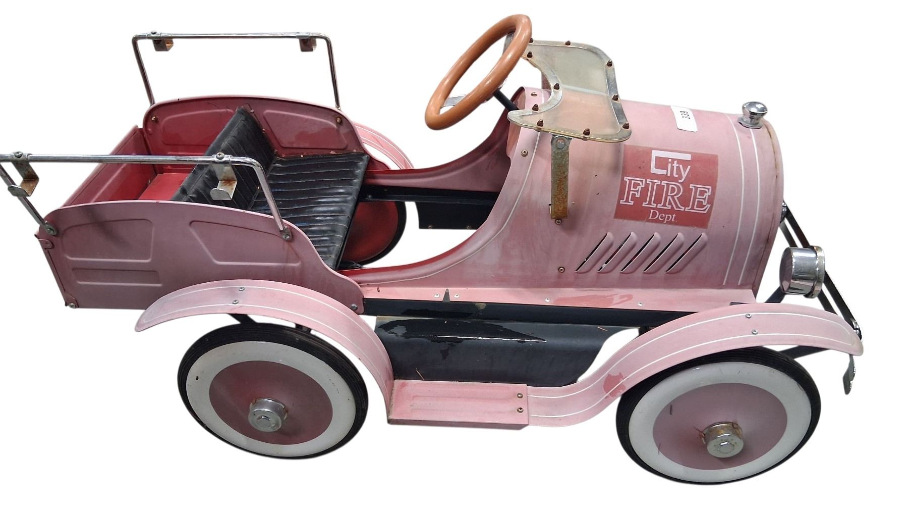 Vintage City Fire Department steel pedal car with good patina 45" long