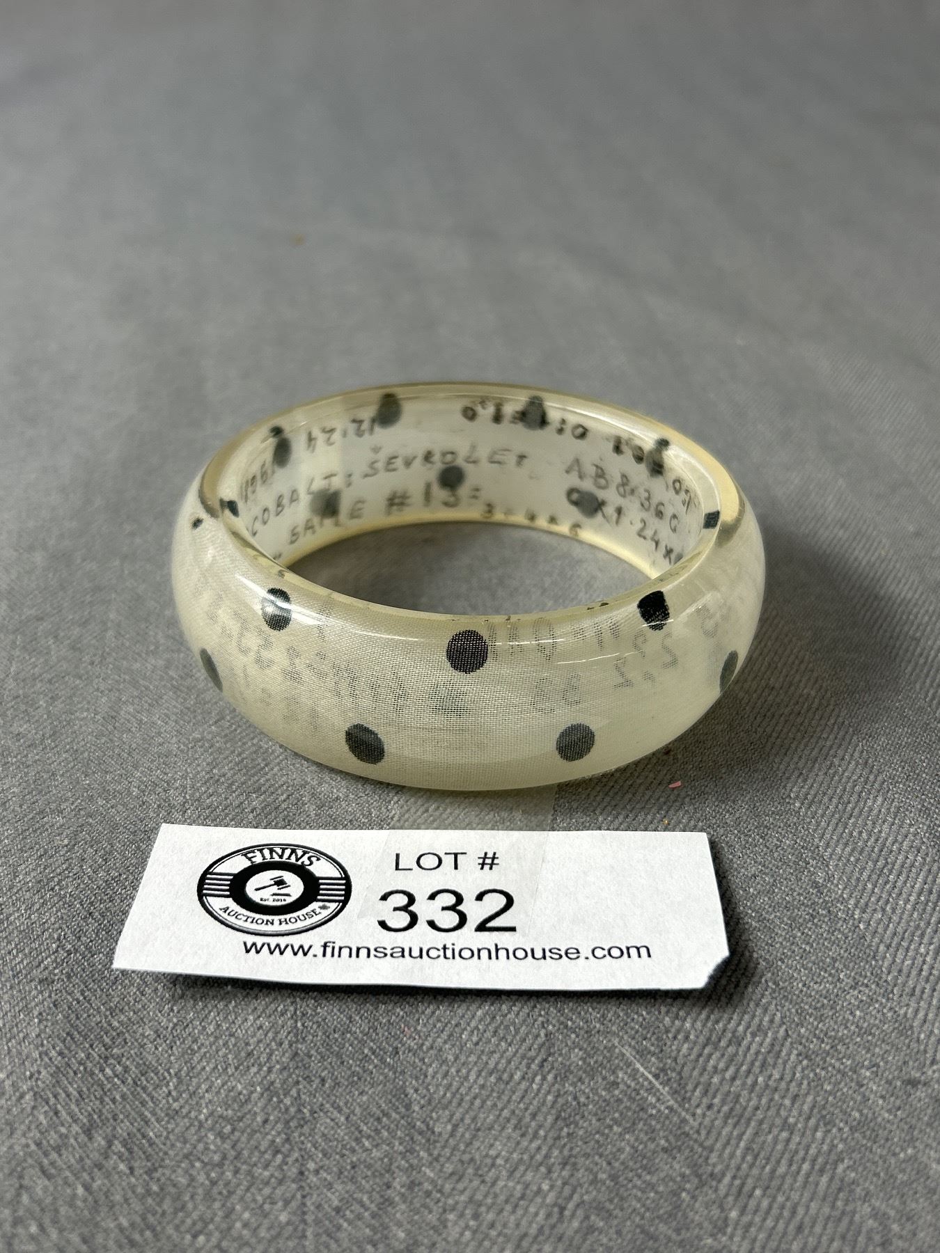 Vintage Clear Celluloid Or Lucite Bangle w/Polka Dots, Many Inscriptions Inside, Like 12:24 1968 Man