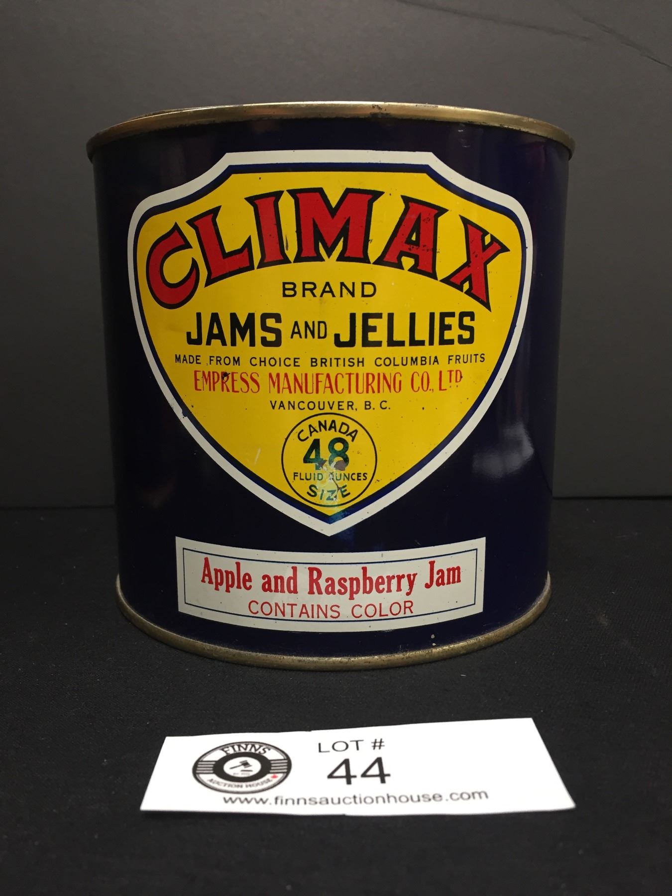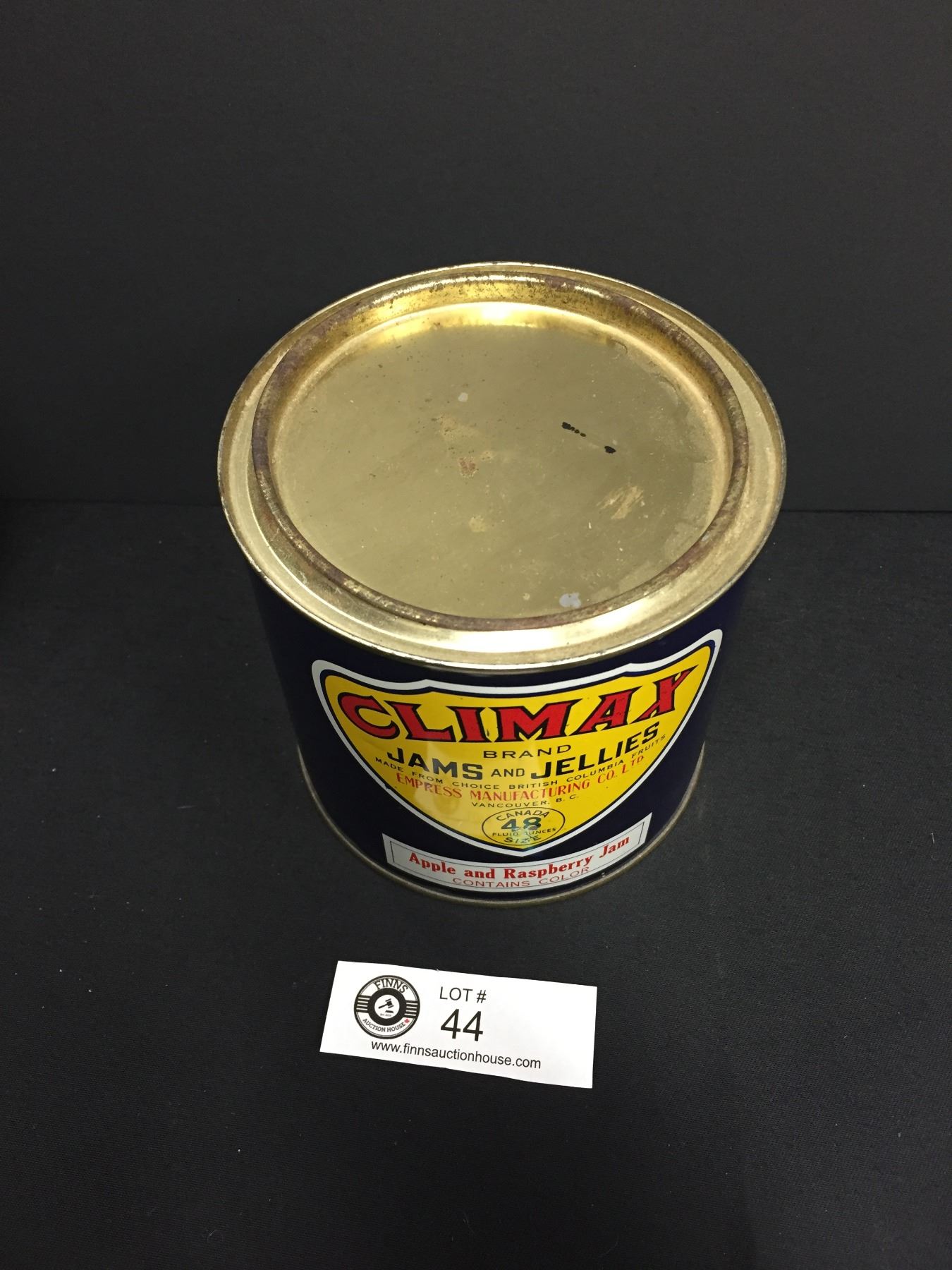 Vintage Climax Brand Jams and Jellies. Apple and Raspberry Jam. 48 Fluid Ounce Size Tin. Empress Manufacturing Company Vancouver BC