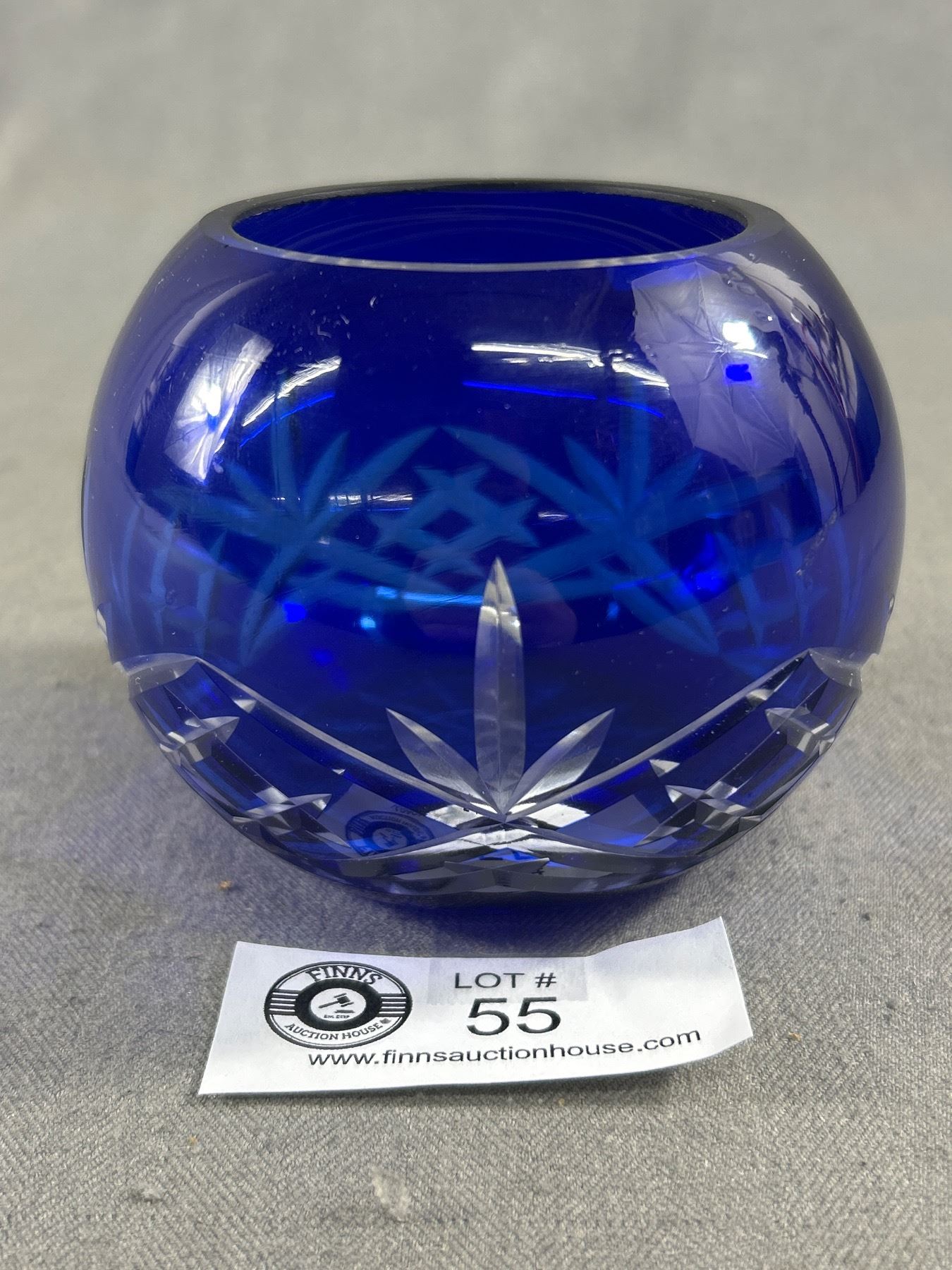 Vintage Cobalt Blue Cut Glass Round Vase. Approx. 3.5"H