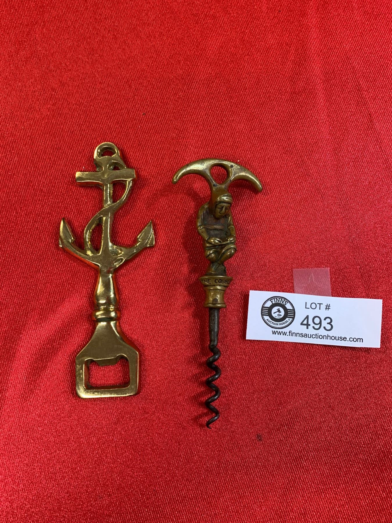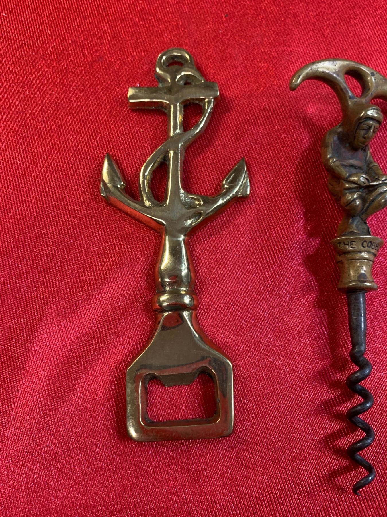 Vintage Cobbler Corkscrew and an Anchor Bottle Opener Brass