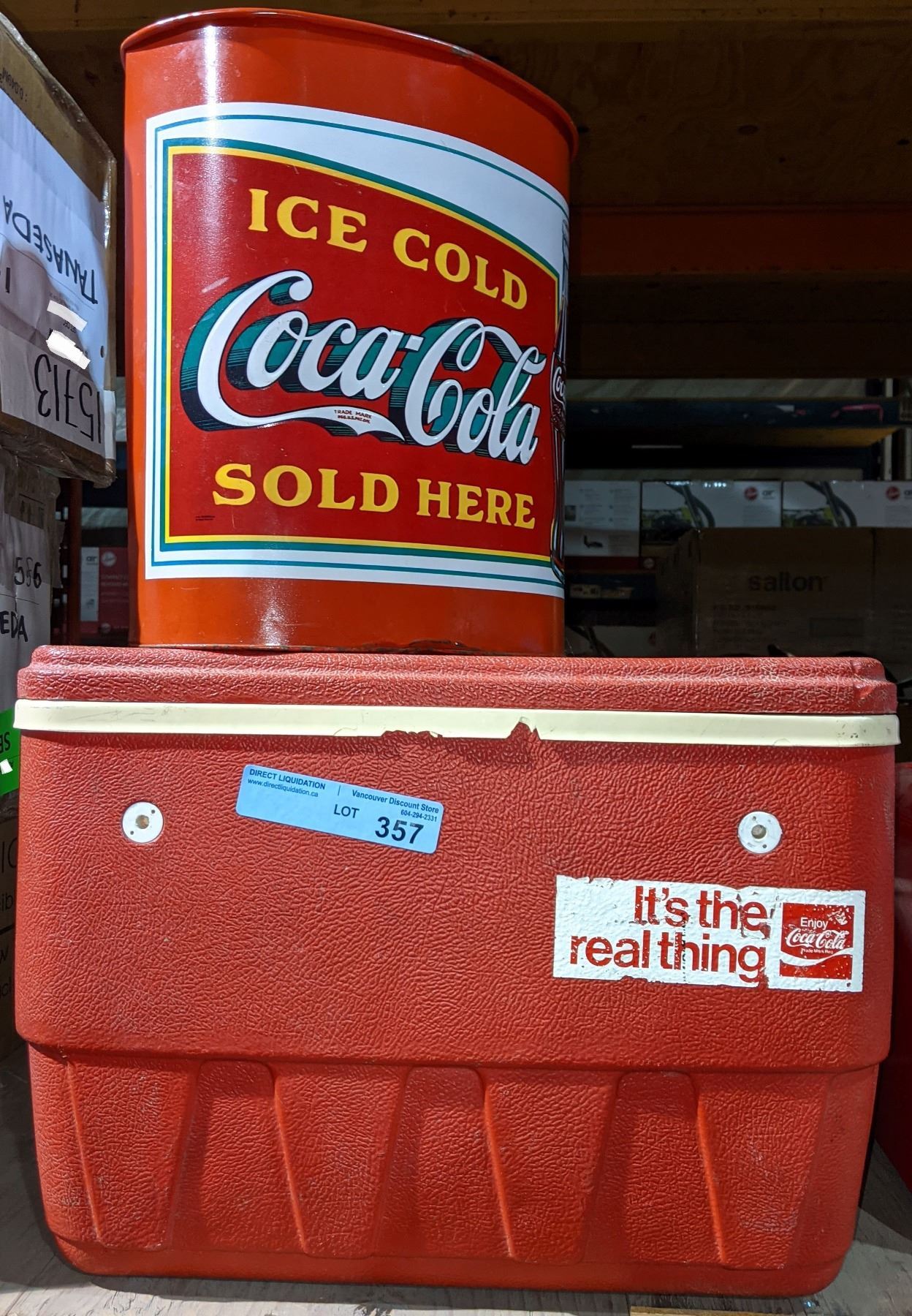 Vintage Coca Cola Cooler and Coca Cola branded Tin Bucket