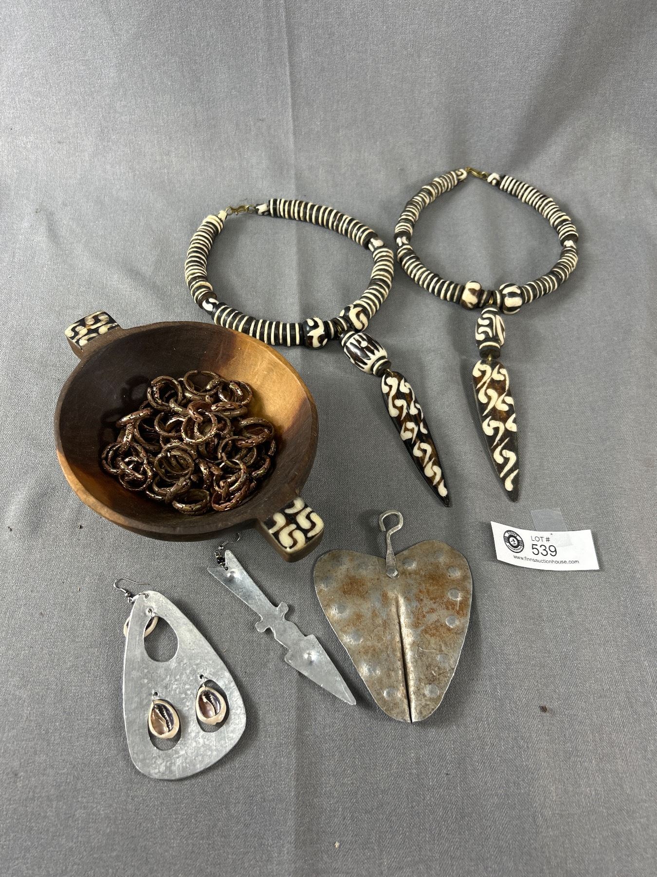 Vintage Coco Joe Hawaiian Bust Souvenir, African Necklaces, Adjustable Rings & More