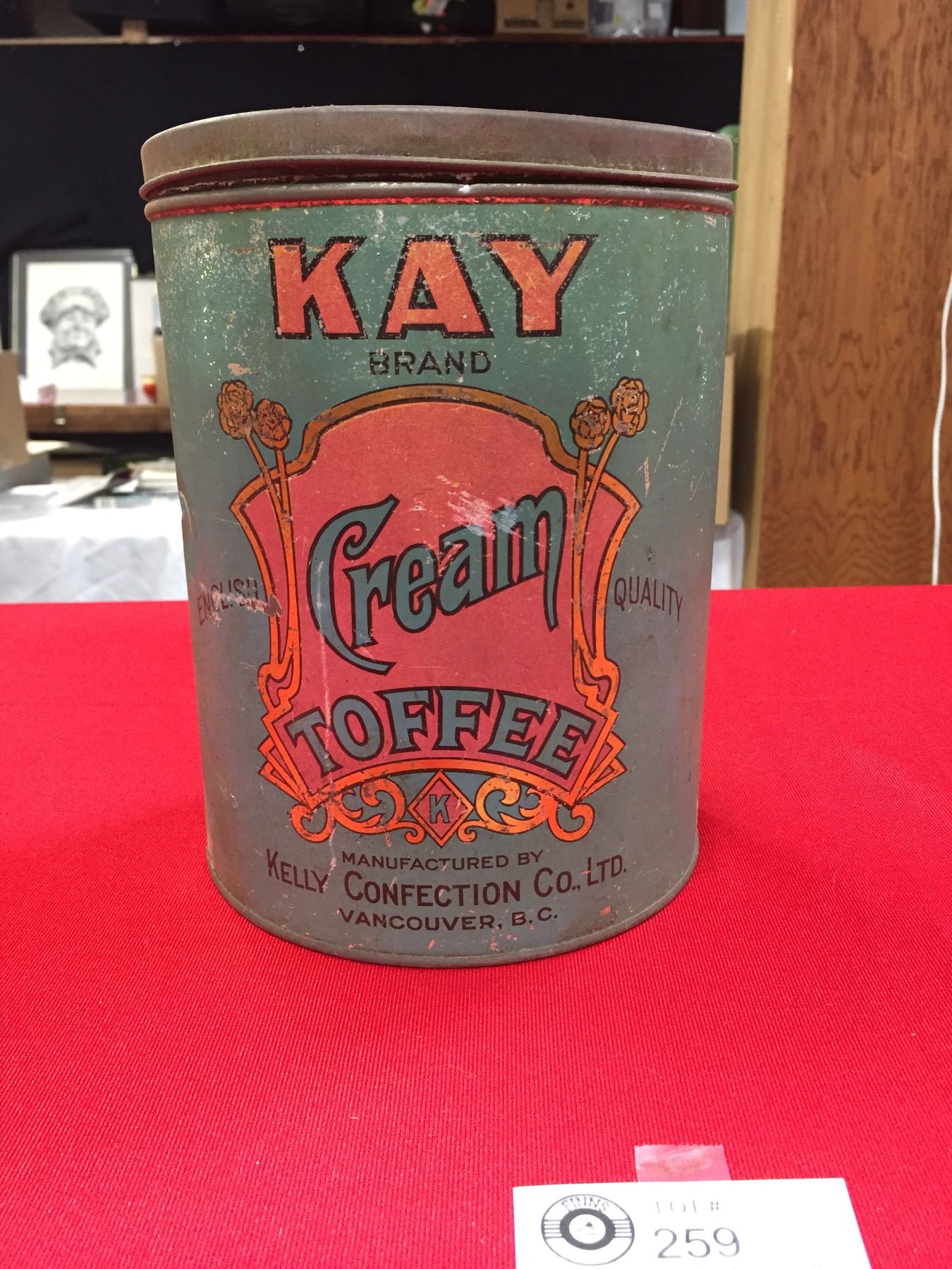 Vintage Coffee Tin. Kay Brand Cream Coffee Manufactured by Kelly Confection Company Vancouver BC