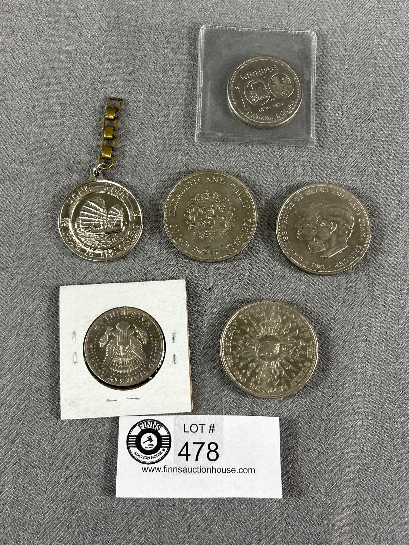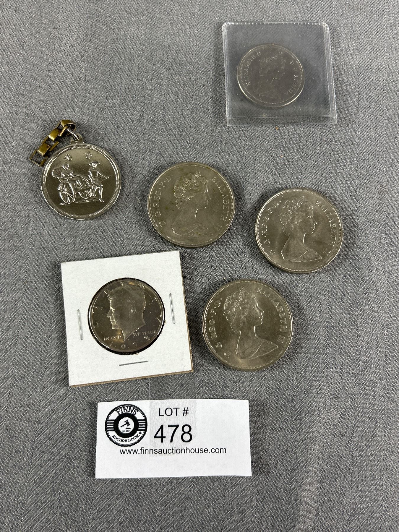 Vintage Coins - 1973 US Half Dollar, UK Royalty Coins, Winnipeg 100 Canada Dollar Coin & More