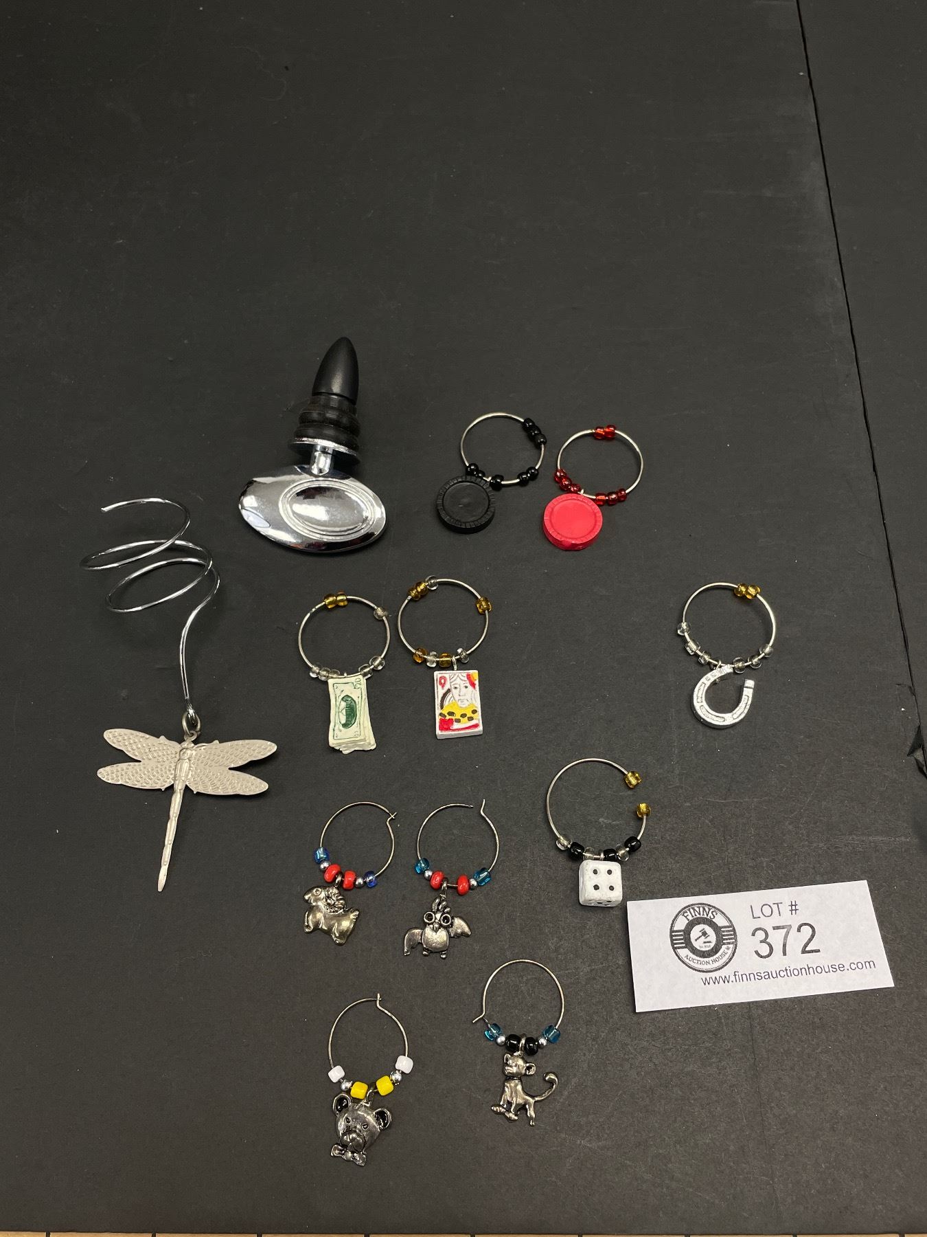 Vintage Collectible Lot - Bottle Stopper, Wine Glass Charms, Firefly Pendant, Etc