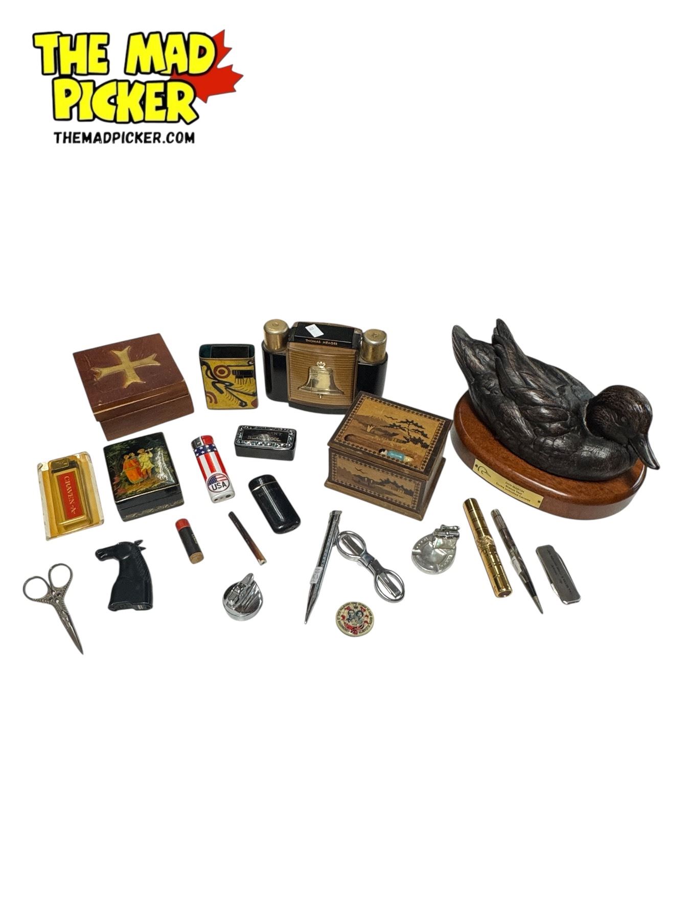 Vintage Collectibles: Duck Unlimited Figurine, Cigarette Boxes, Match Box, Lighters, & More