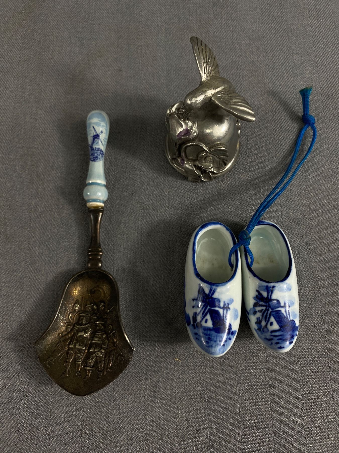 Vintage Collectibles - Holland Made Sugar Spoon & Shoes. Metal Candle Snuffer