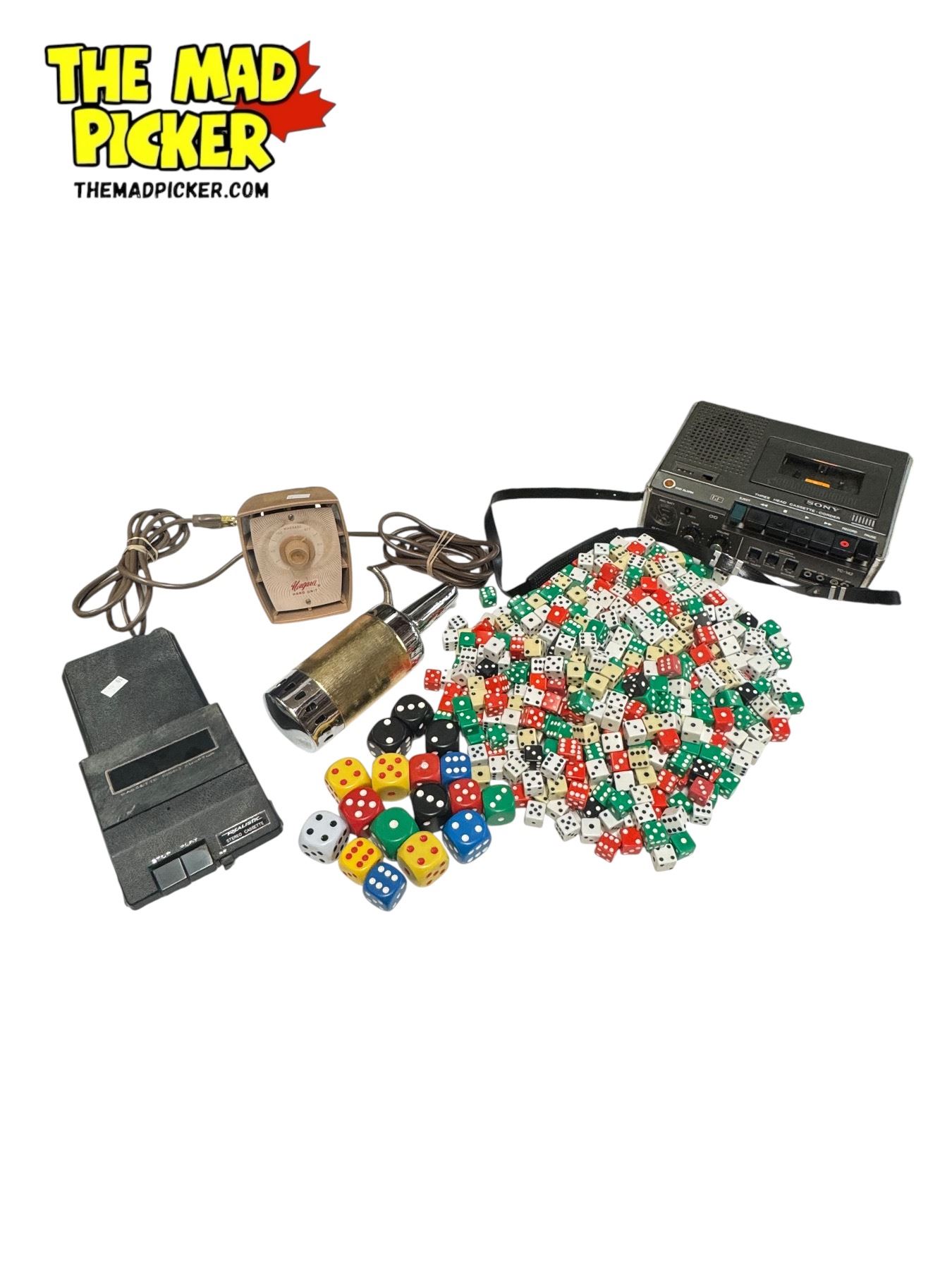Vintage Collectibles: Niagara Hand Unit, Dice, Sony Three Head Cassette, & Beta Tapes