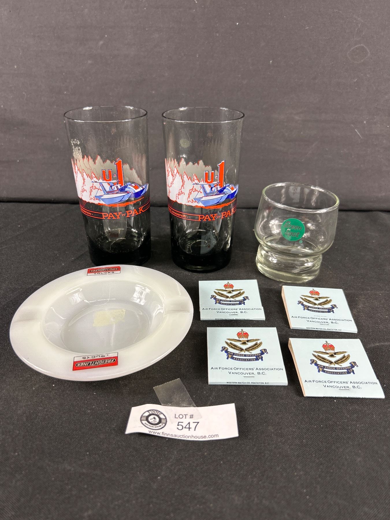 Vintage Collectibles - Pay N Pak Glasses, Air Force Officers Association, Van. B.C. Matchbooks, Freightliner Ashtray & More