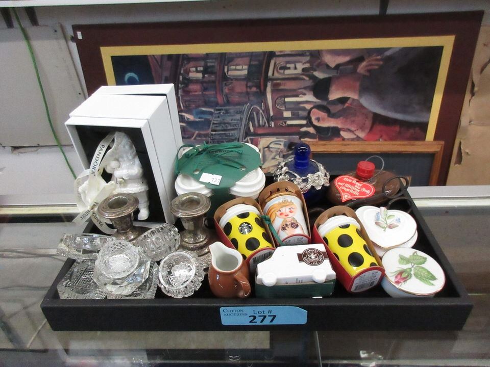Wick trimmer, mini creamer, cobalt perfume bottle and more. 2013 Pandora Santa with box, 2015 & 2016 Starbucks ornaments.